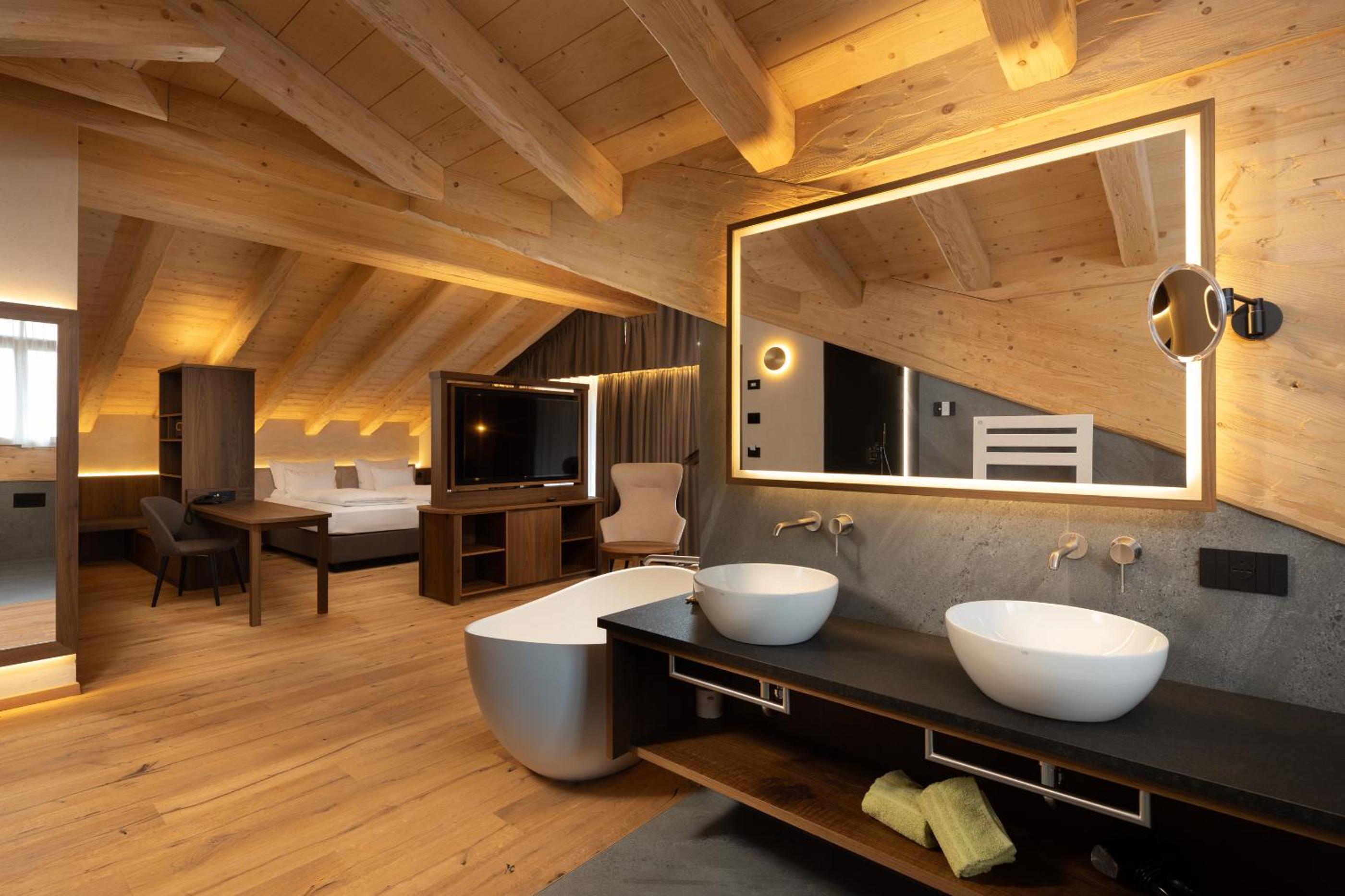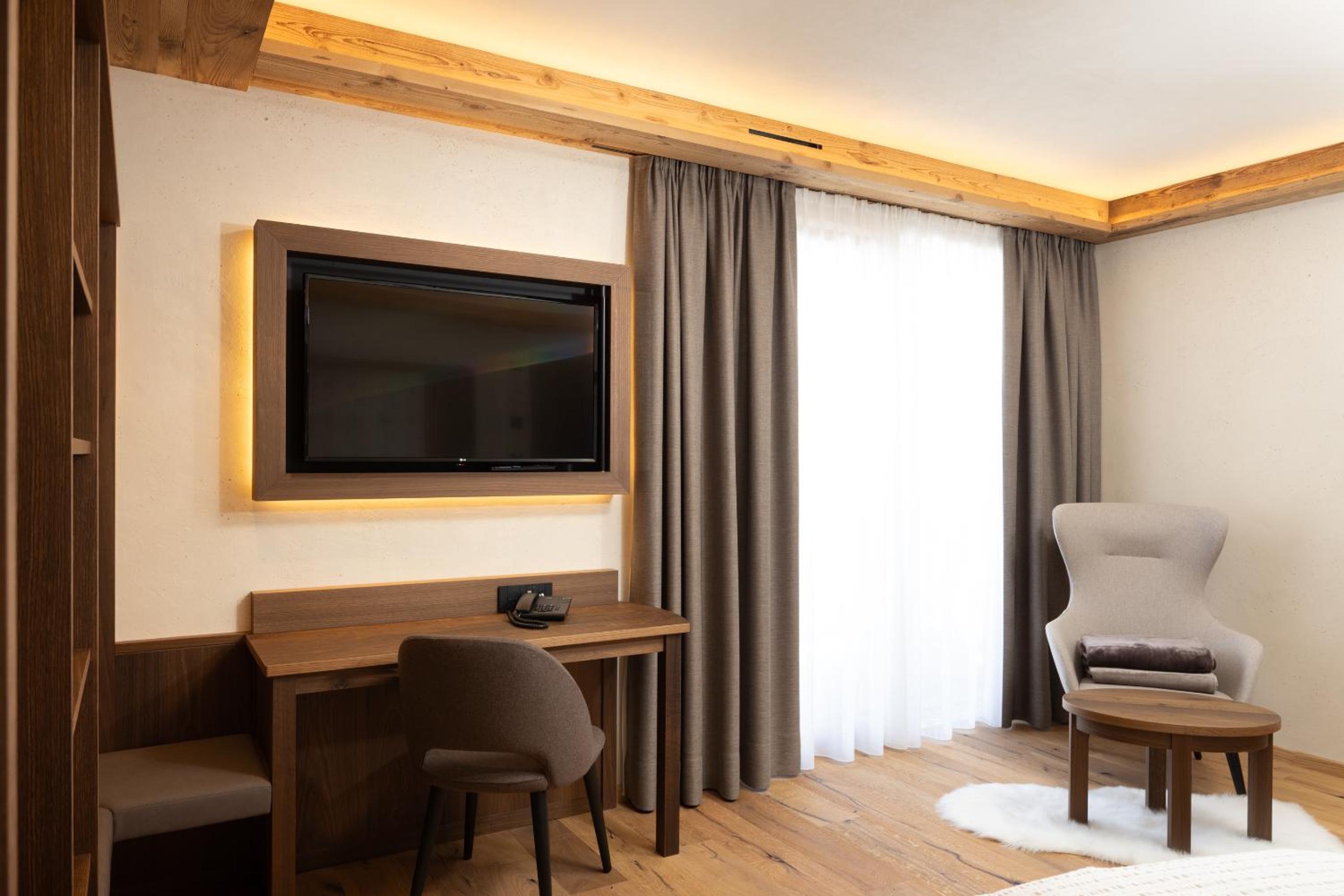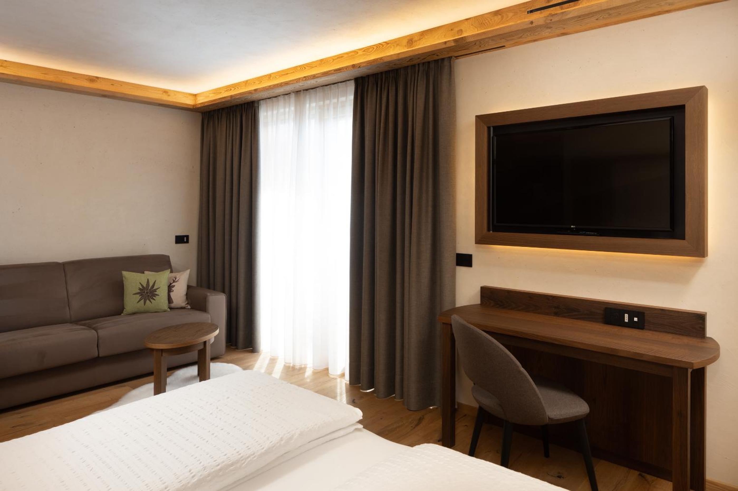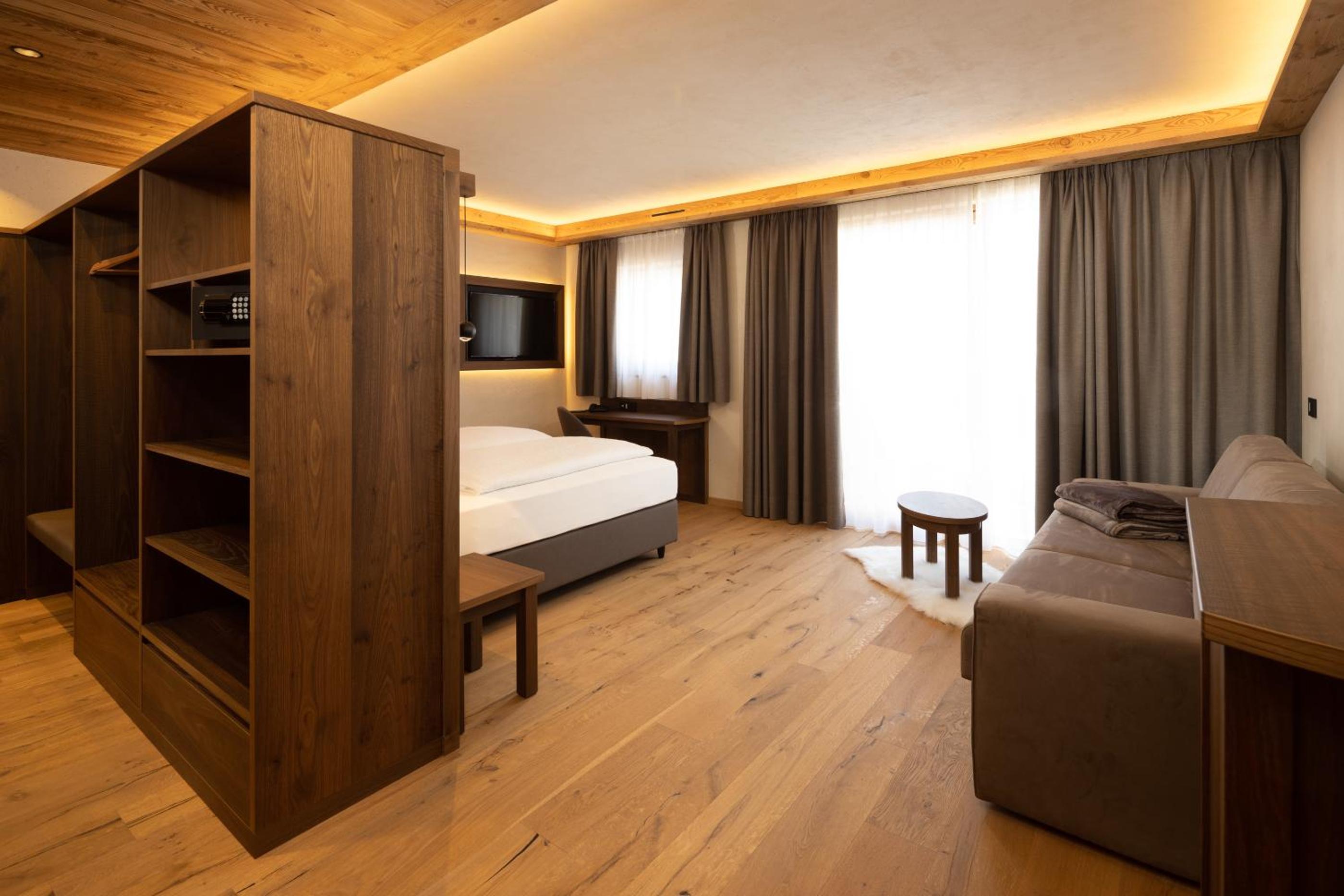 Discover the charm of Camino Rustic Chic Hotel in Livigno, offering elegant 4-star accommodation with breathtaking mountain views. Each room is equipped with modern amenities including a flat-screen TV, minibar, and a private bathroom for a comfortable stay.
