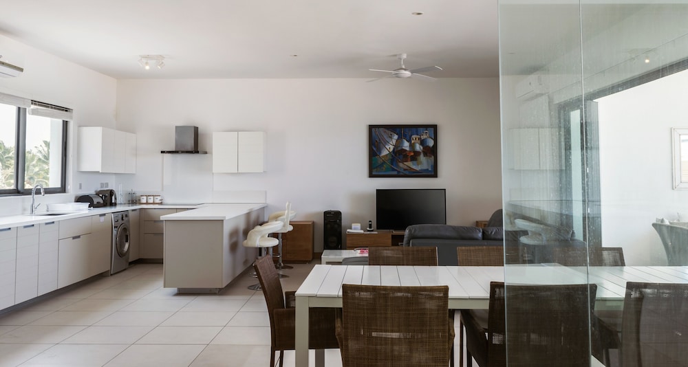 The apartment itself was wonderful. Clean to a fault and with all creature comforts one could desire. The cleaning staff takes care of all the laundry, dishes and daily cleaning (other than on Sunday). There is a large mall about 5 kms away and a large supermarket about 1 km away at the other end of Flic en Flac. We recommend that future guests should rent a car as it really gives you the flexibility to plan out your day and nothing is really close by other than the Flic en Flac beach.
