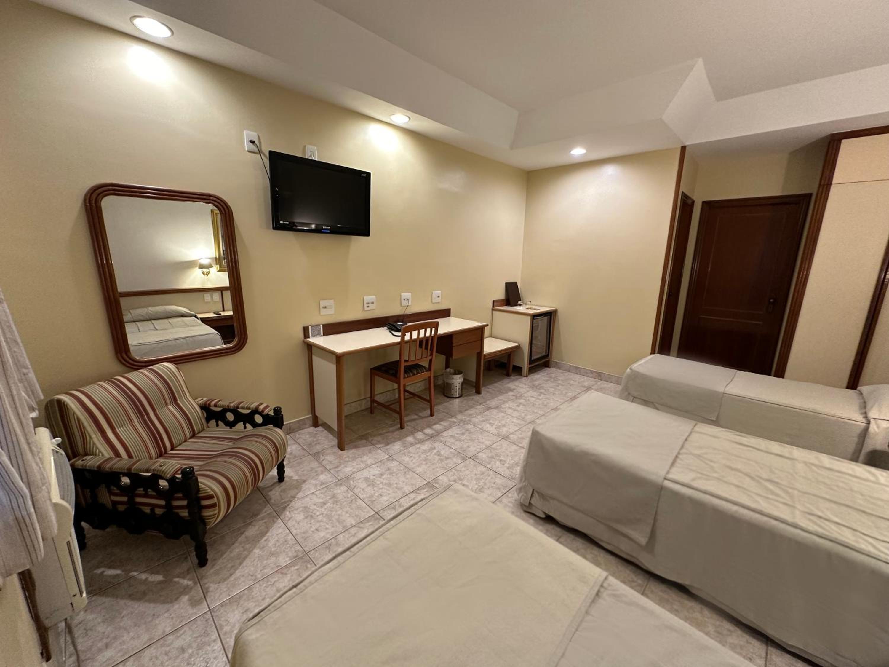 Já fiquei em quartos melhores no mesmo hotel, mas desta vez colocaram um quarto com colchão ruim, travesseiros grandes e duros, janela com alguma buracos, permitindo a entrada de vários mosquitos.