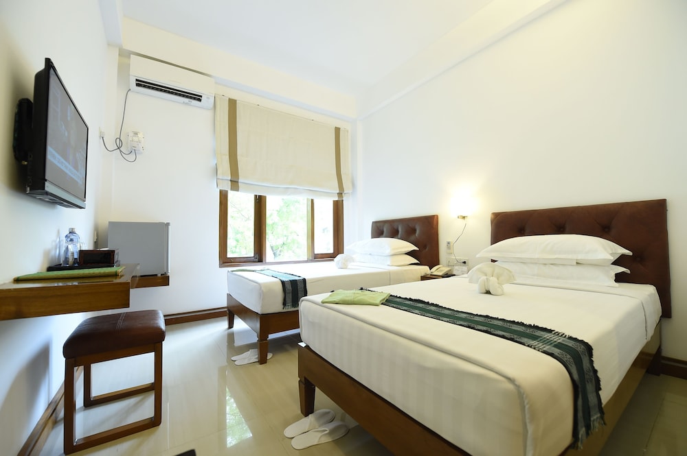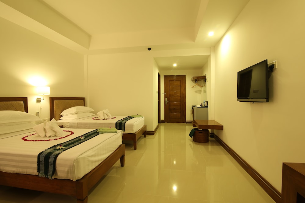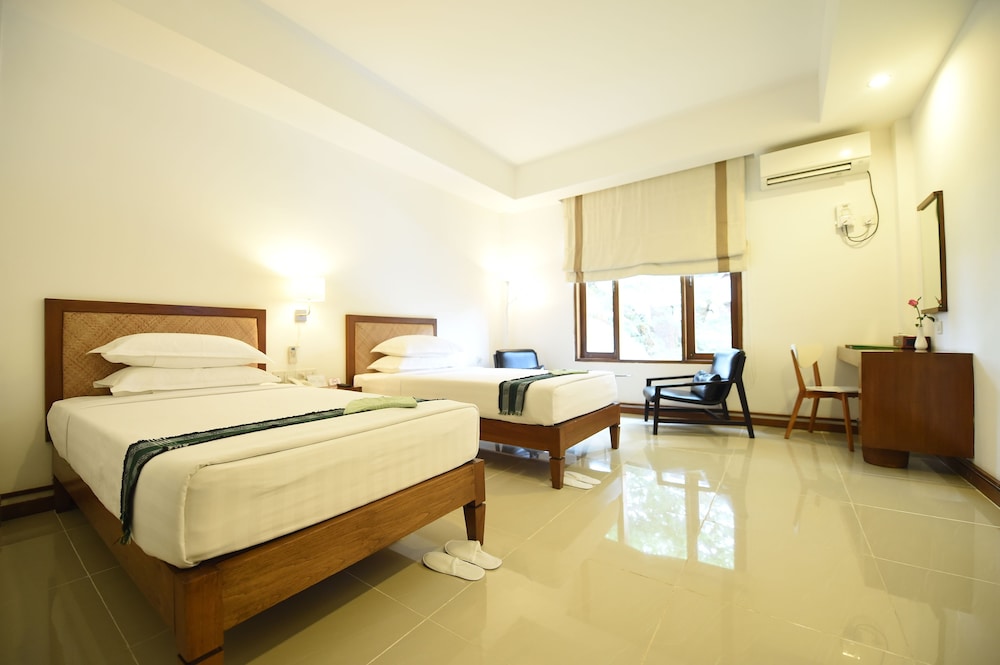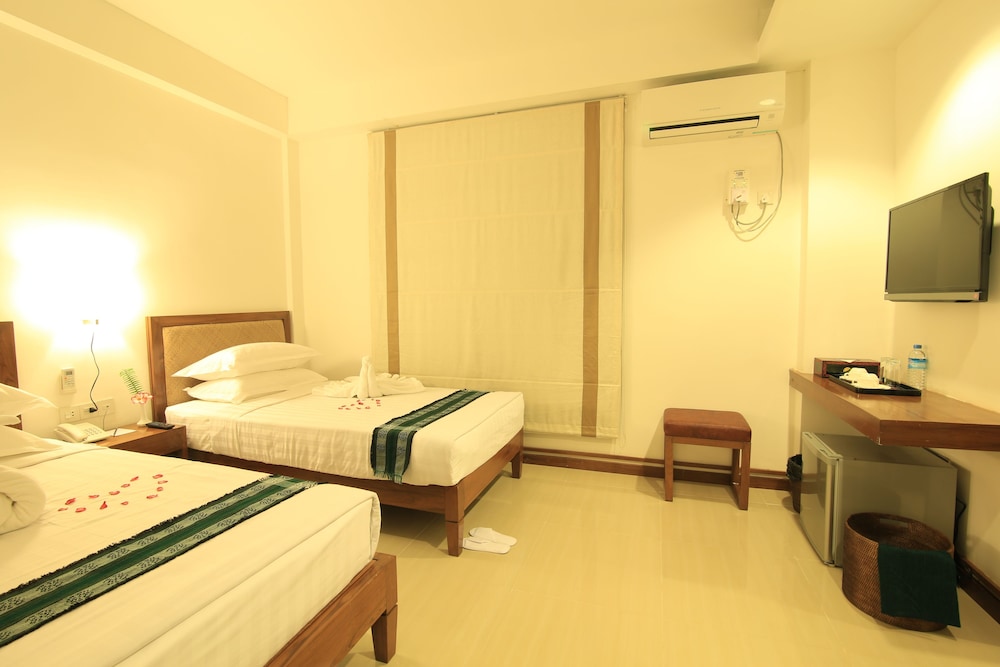 Room was spacious and adequately furnished. Bathroom also good size. Nice swimming pool and adjacent bar/eating area. Good and diverse breakfasts offered on nice rooftop patio providing both shaded and unshaded seating. Staff were most helpful in arranging tours/taxis/tuk-tuks.