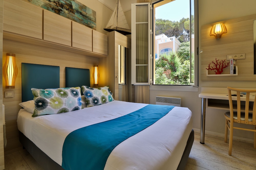 Une chambre agréable, propre, avec loggia et vue sur la mer et la plage de Rénécros. Pouvoir profiter de la plage et se baigner est un grand plus. Le logement comportait une deuxième chambre et donc offrait la possibilité de loger un couple et trois enfants. Le personnel est très accueillant.