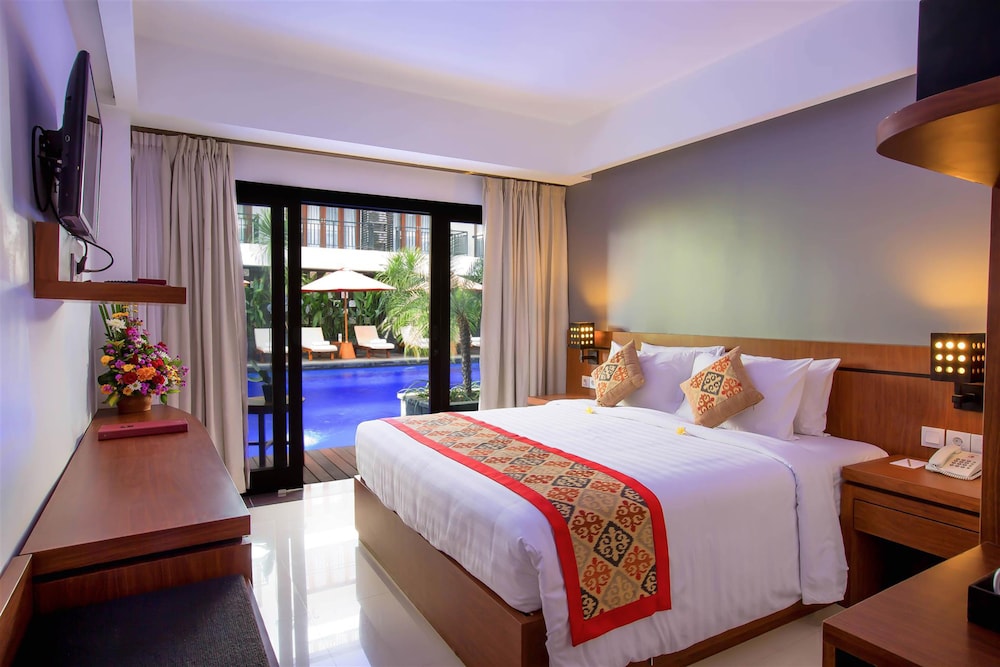 La Villais Kamojang was within a 3-5 minute walk to Seminyak square, some really nice restaurants, shopping and about a 10 minute walk to the beach. We had a 6 year old so it took a little longer. Staff were extremely polite, friendly and spoke above average english which made it more relaxing. the restaurant at the hotel was on the roof, so the breakfast view was great. The food menu is actually really good which did suprise us as the hotel isn't the most modern we have stayed in in Bali. The Nasi Kampour is the best. My daughter loved the rice even with its spices. I would of purchased it every meal at ($6 AUD)as it was delicious but as i found, so were many other things. The pool was very relaxing and we often had it to ourselves. The swim up bar was quiet and didn't look fancy, but they had every cocktail on the list in the foyer bar which was only 5 meters away so not an issue for us.The toilet in our room leaked and that was annoying, but i didn't complain, so cant complain now about their opportunity to resolve my one and only issue. My son was sick on our second last day and they serviced the room twice for us with fresh sheets and towels etc. (He had not eaten at Kamojang so his illness was not related to the hotel). For the money we paid, we recieved way more bang for our buck than anywhere else we have stayed in Bali previously and found it a stress free holiday as we had only gone because our son had booked schoolies. We usually go in July/August.