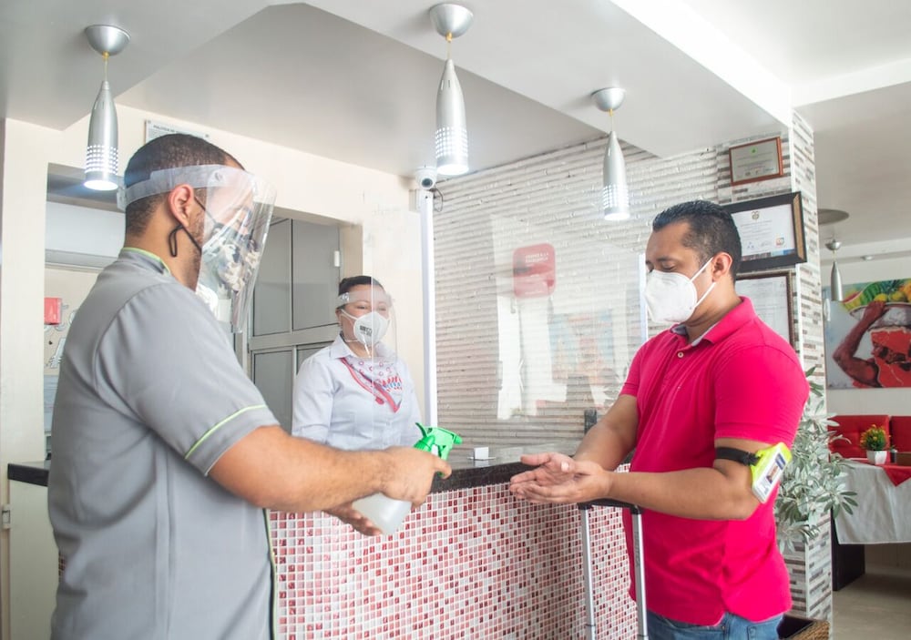 Guests are provided with free hand sanitizer