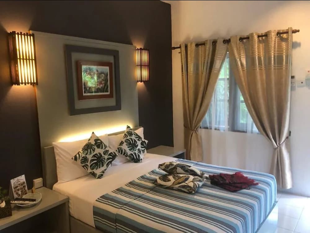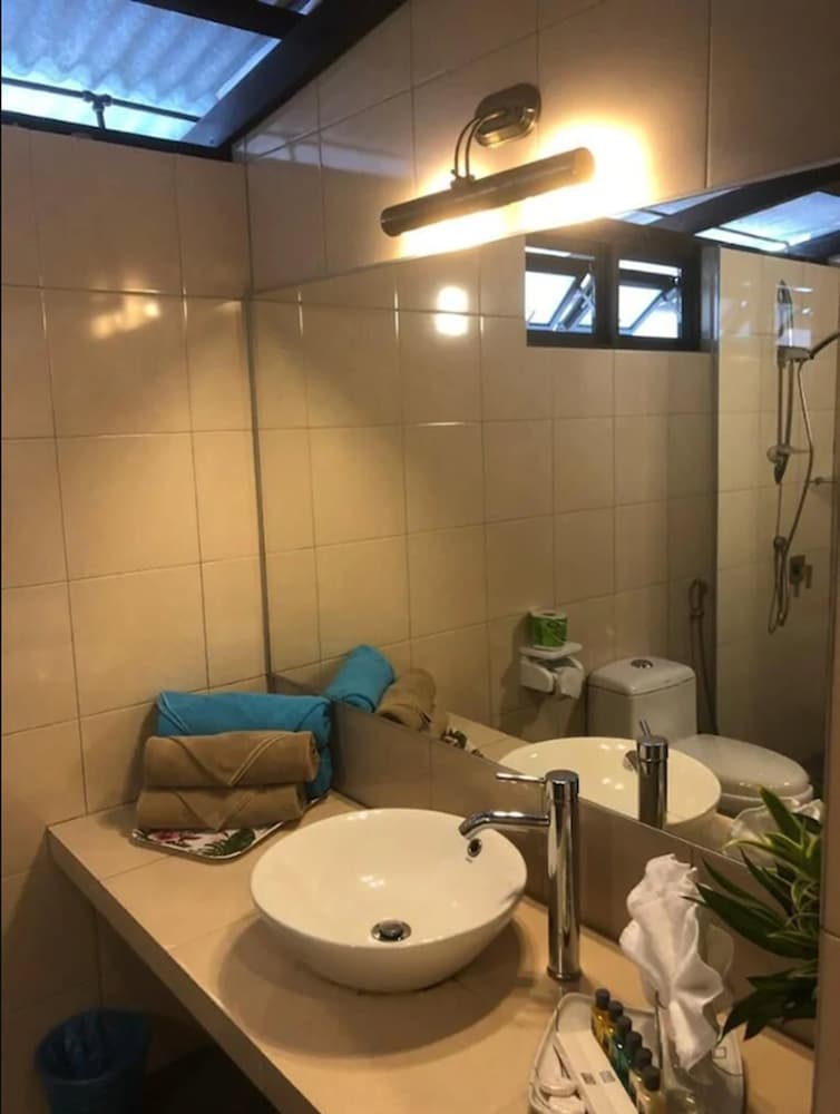 We booked two rooms for 4 nights, left after the first night. Backpacker hostels would be even better, how people can give high ratings is unbelievable. Our bedroom: aircon is not working, fan rusty and dirty, get one towel for pool, beach and shower, no lock. Our guests room: shower not working, dirty room, cockroach, fan like ours. Both rooms no bed sheets, only bed covers.