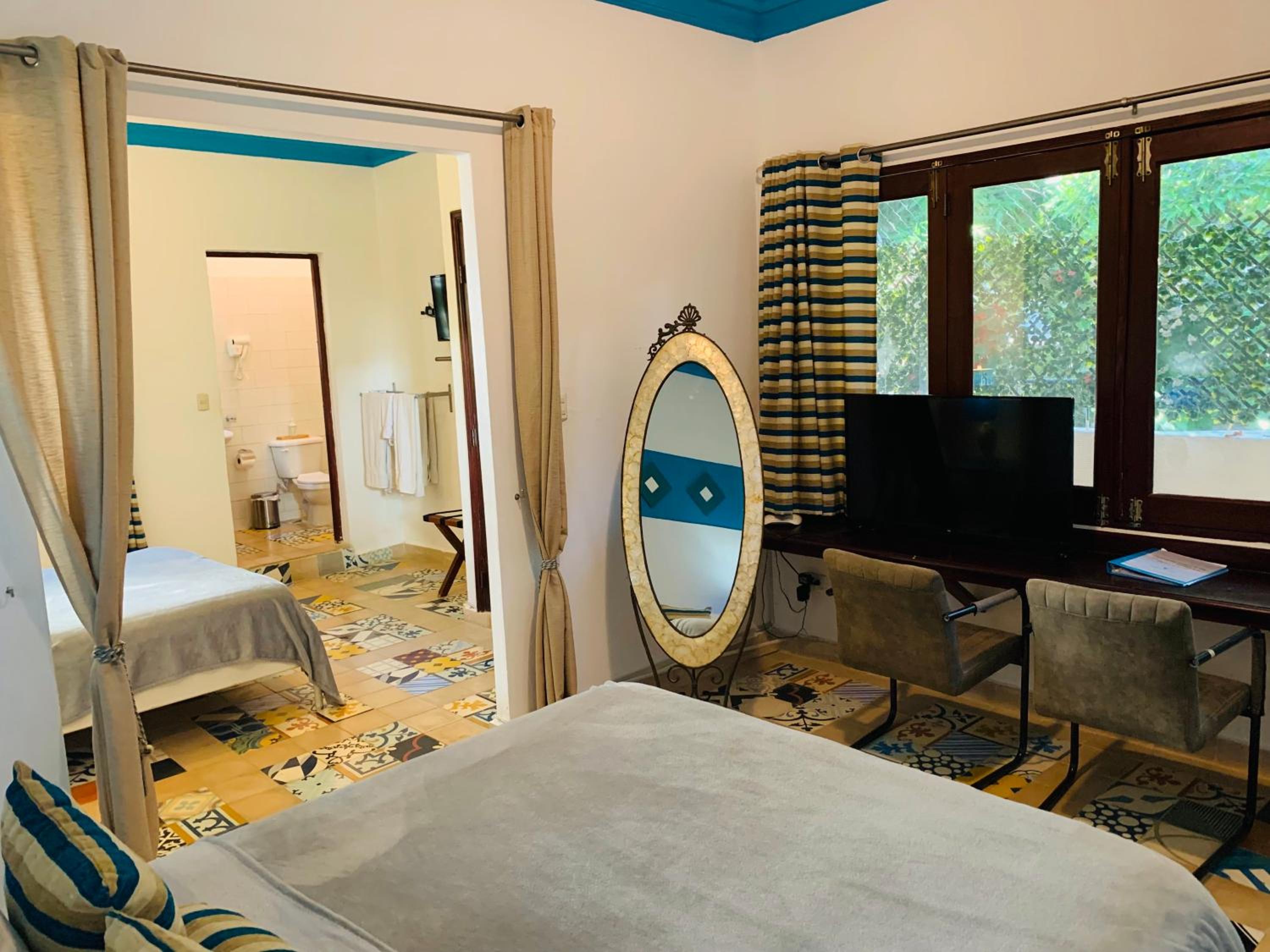 Indulge in air-conditioned rooms featuring internet TV, safety-deposit boxes, and elegant bathrooms. Choose from a variety of room types, each uniquely designed. Superior rooms boast Colonial tiling and high ceilings, while suites offer kitchen facilities for a convenient stay.