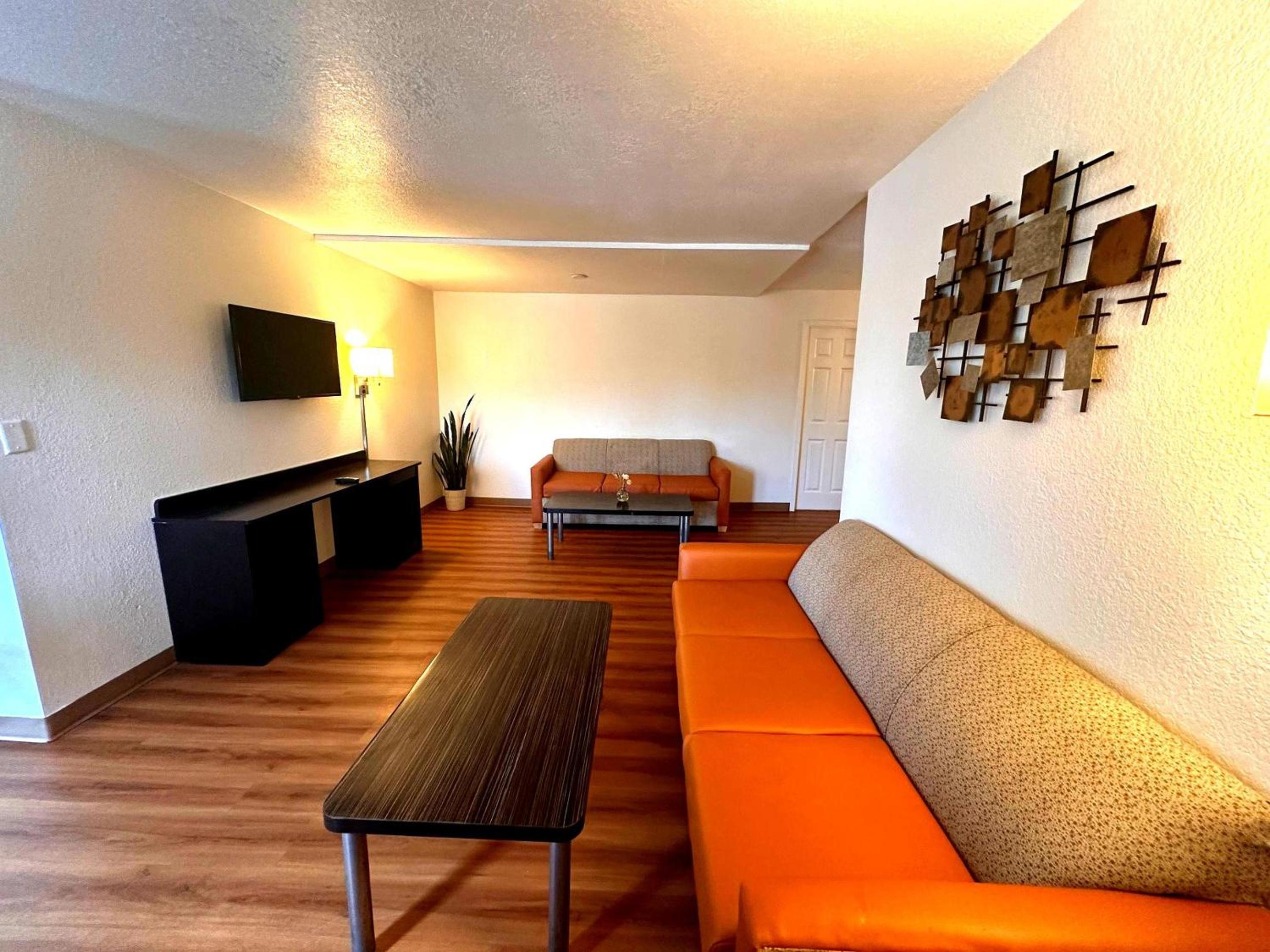 The rooms are newly updated and very nice. I love that there was no carpeting. However, they didn't have hair dryers or coffee makers in the room, and that was inconvenient. There is no continental breakfast available, so be aware that you need to bring your own food or plan to eat off-site. They do allow pets, which was a plus for me since I was attending a dog obedience trial. The hotel isn't in the best neighborhood, but the staff was helpful and seemed very attentive to the multiple security cameras on site.