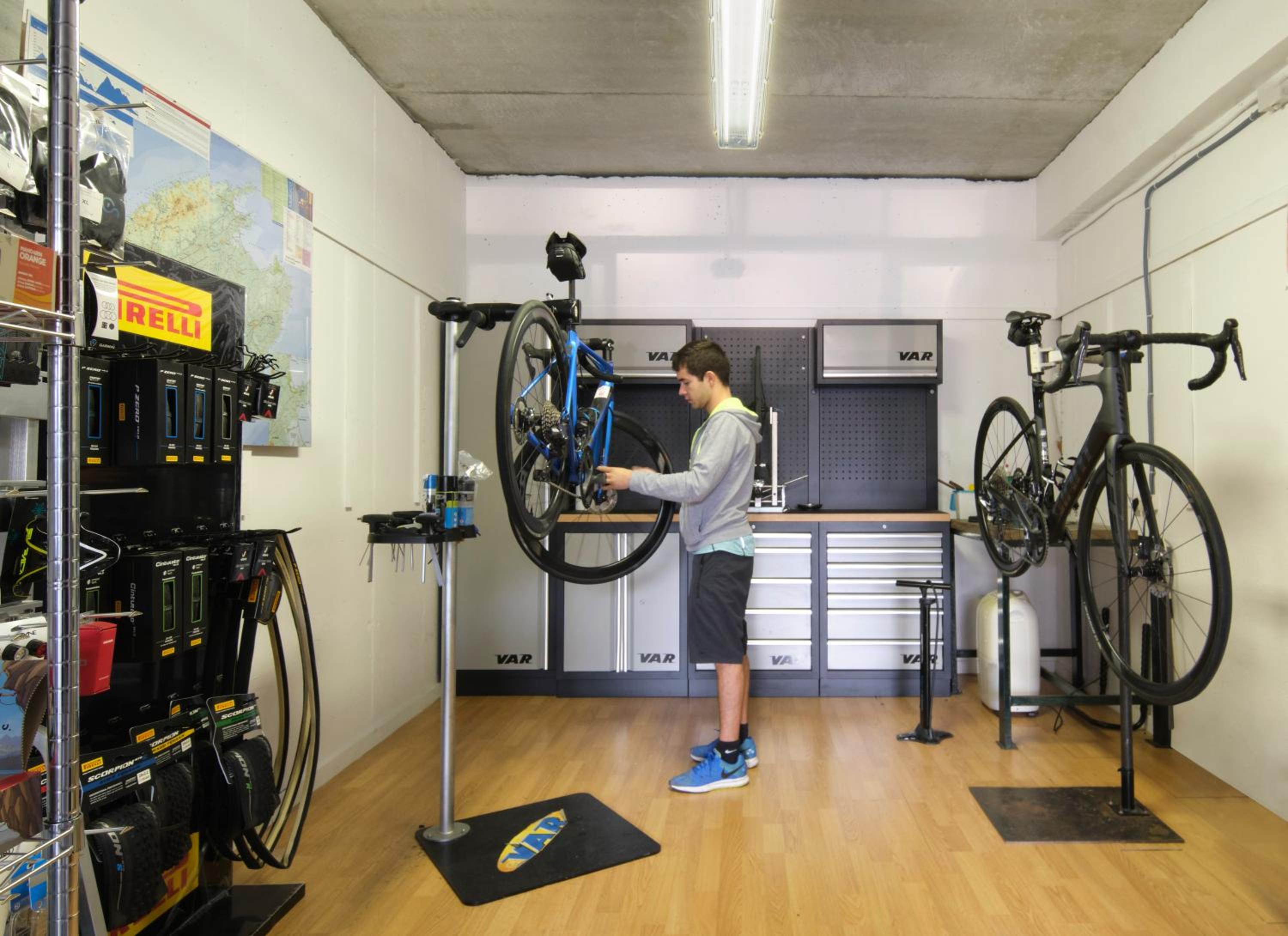 The bike garage was not equipped with tools, old tatty bike service stands and generally a bit run down over all