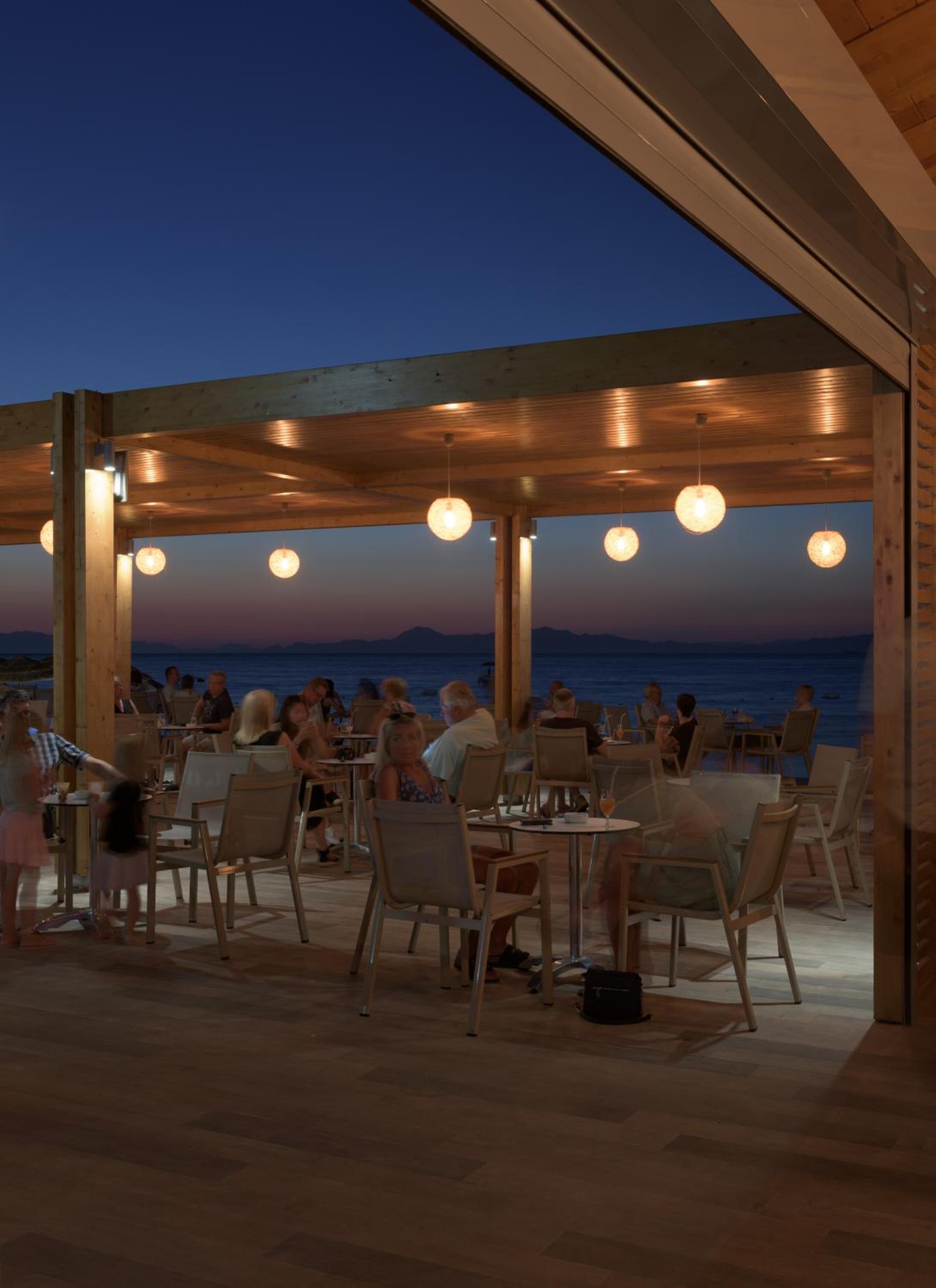 Savor a delectable buffet breakfast and authentic Greek cuisine, including favorites like gyro and mousaka. Quench your thirst with refreshing drinks at the beach bar. For young guests, we offer a playground, children's pool, and entertaining nights organized by our animation team.