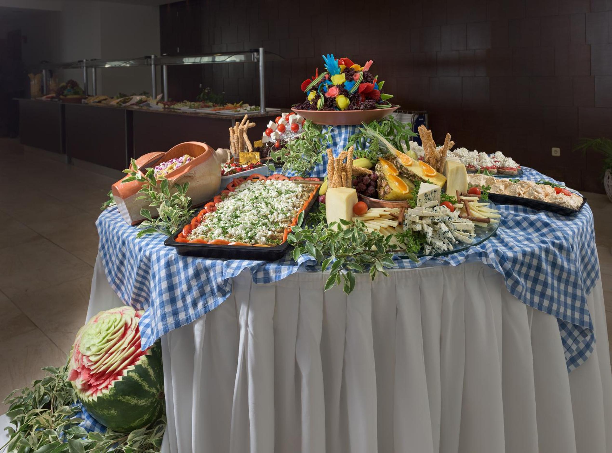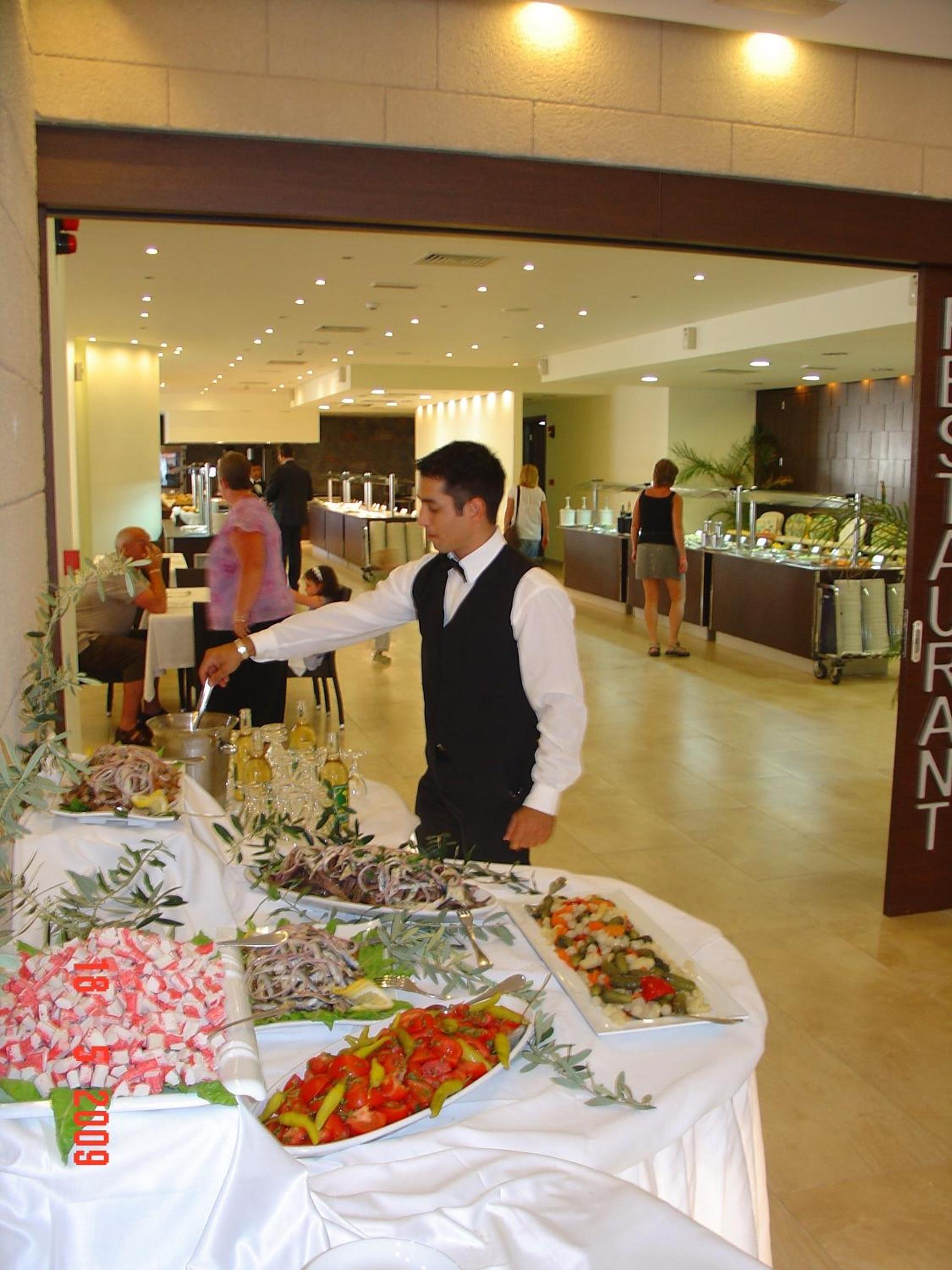 The main restaurant is busy but food was freshly produced all the time and regularly replenished, each night different foods were put on from the hot buffet, the cold buffet was largely the same, nice desserts too. I am not a vegetarian but they did cater to people who may have any dietary requirements. The hot breakfast is also severed in the main restaurant, again plenty of choice - English & Continental options available.