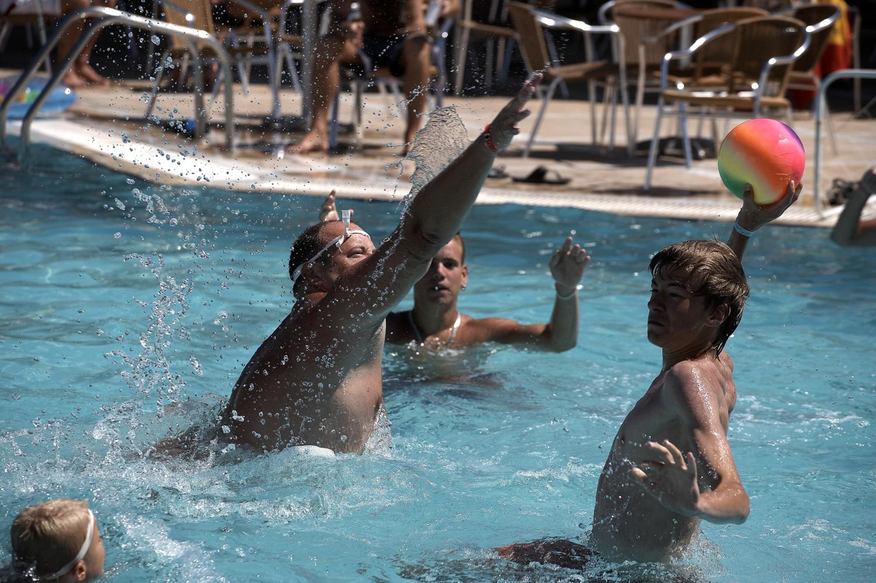 Pool area is small with few beds again which are mostly reserved with the blue towel .
