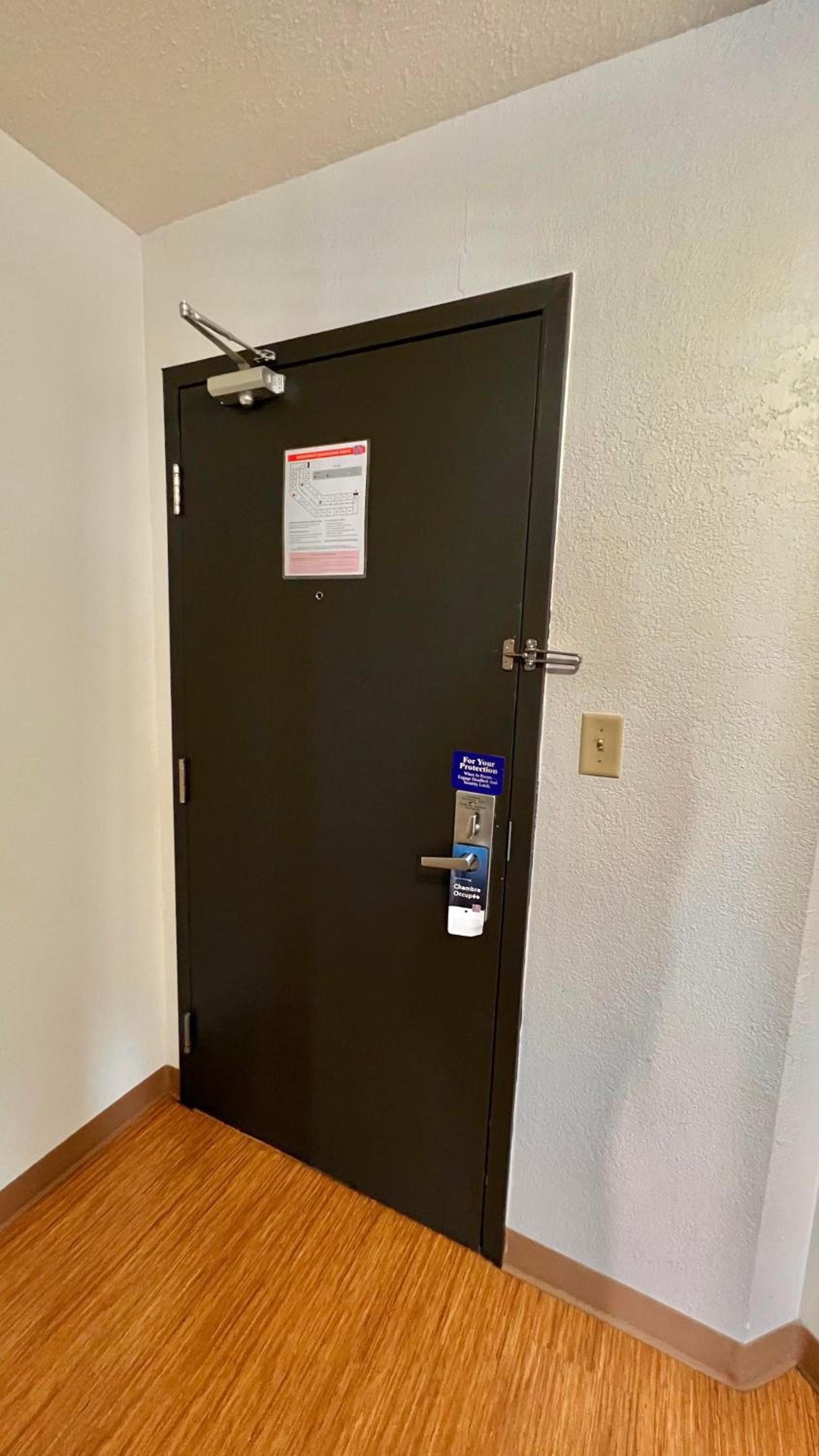 The walls were not soundproof so you could hear all the movements and conversations in the neighbouring rooms. I had to leave the TV on overnight to drown out the noise. The spyholes in each door were just holes plugged with a papertowel. The floor near the outside door wass a bit ripped up and the caulking around the upper shower walls was old and cracked.Breakfast was very poor with no eggs, no yoghurt, no fruit, no milk or cereal. All that was provided was some bread, muffins and bagels (no cream cheese), packets of butter, peanut butter and jam. Coffee was very poor quality. Didn’t try the orange nor apple juice. The fridge had not been cleaned out from previous occupants meals.