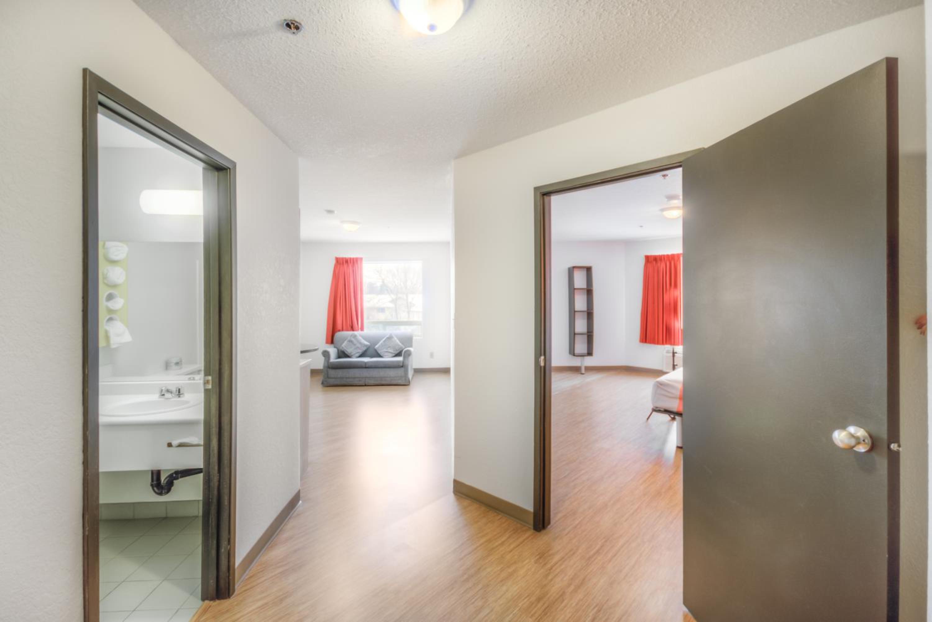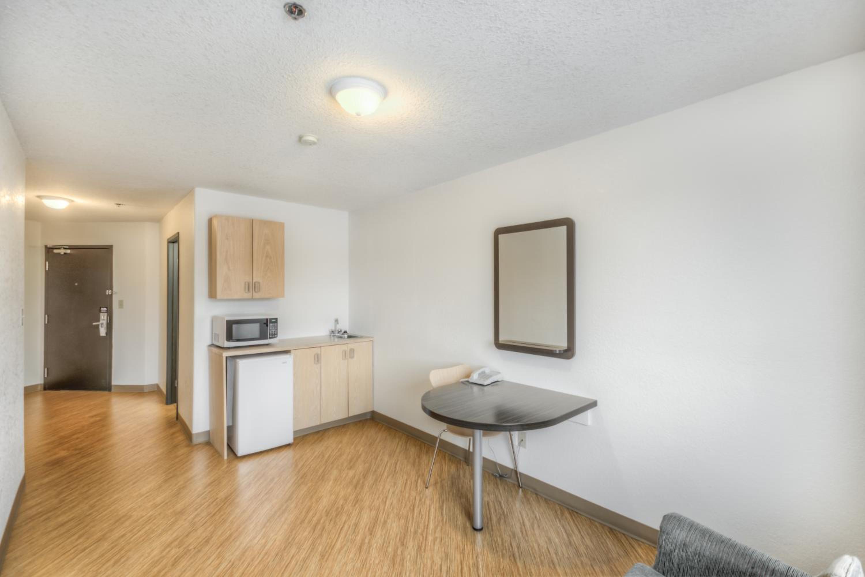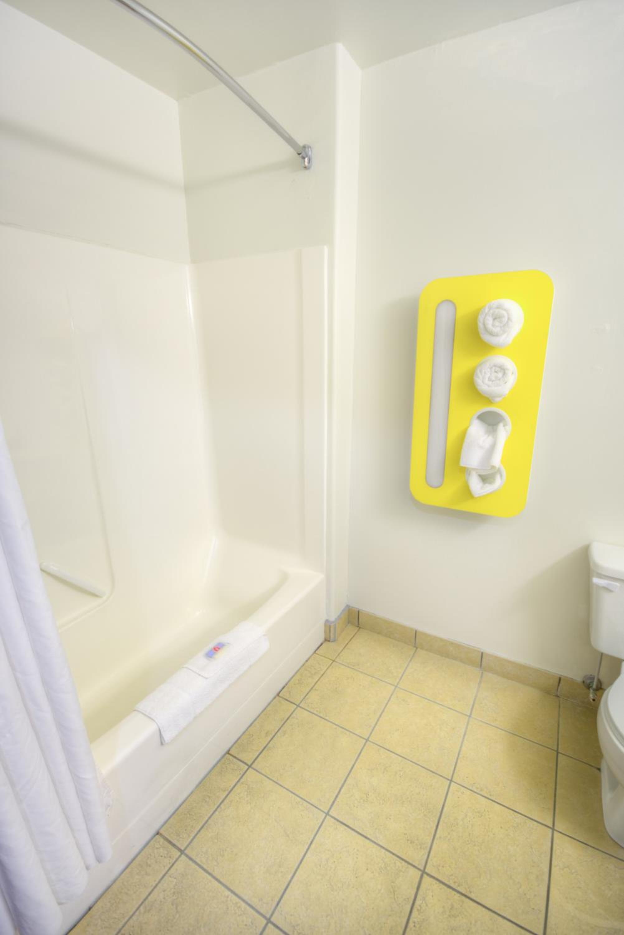 I liked the staff and the exit door from the room so we could take our dog directly outside. The TV and fridge were hand, beds were comfortable and clean. the bathroom was clean and both the bath tub and the shower were functional.