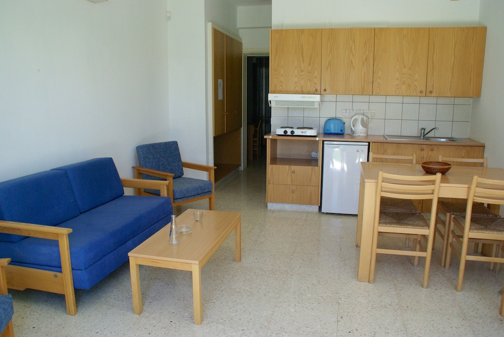 This is a great little place. The accommodation is basic but was everything we needed - when it stays studio apartment there isn’t enough facilities for self catering so just be prepared for that. It is very well kept and very clean and tidy with pretty gardens. The staff are so helpful and friendly. Bar costs are reasonable. It’s a short walk into Pissouri Bay where you’ll find several places to eat. It’s a quiet location so you may want to hire a car depending how long you stay. Pissouri village has more tavernas and is a taxi ride away €10 each way. The only thing I will criticise about this pool is the ridiculous pool bed situation. There just aren’t enough beds, and people seem to put their towels out the night before or the VERY early hours of the morning. I was there at 7am one day and all the beds had gone, but no one was actually on the beds until much later in the day (just reserved with towels). It’s crazy. Having said that, I would definitely recommend this place and wouldn’t hesitate to go back.