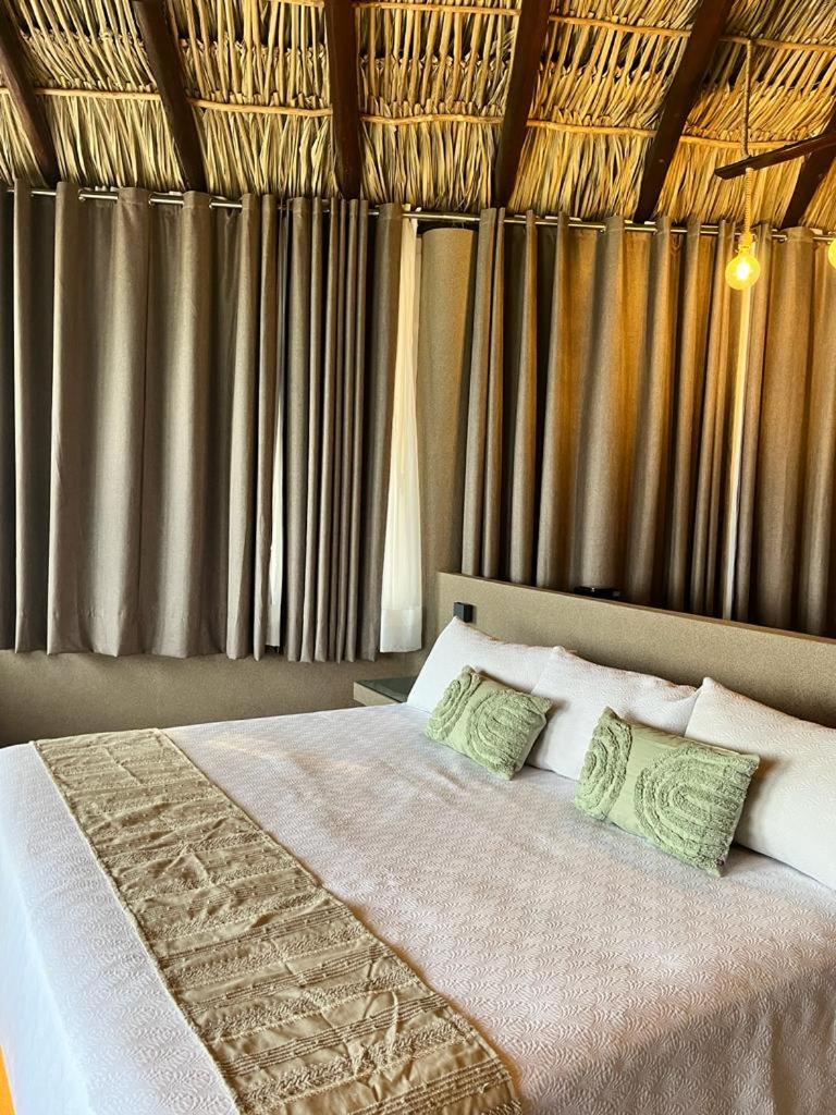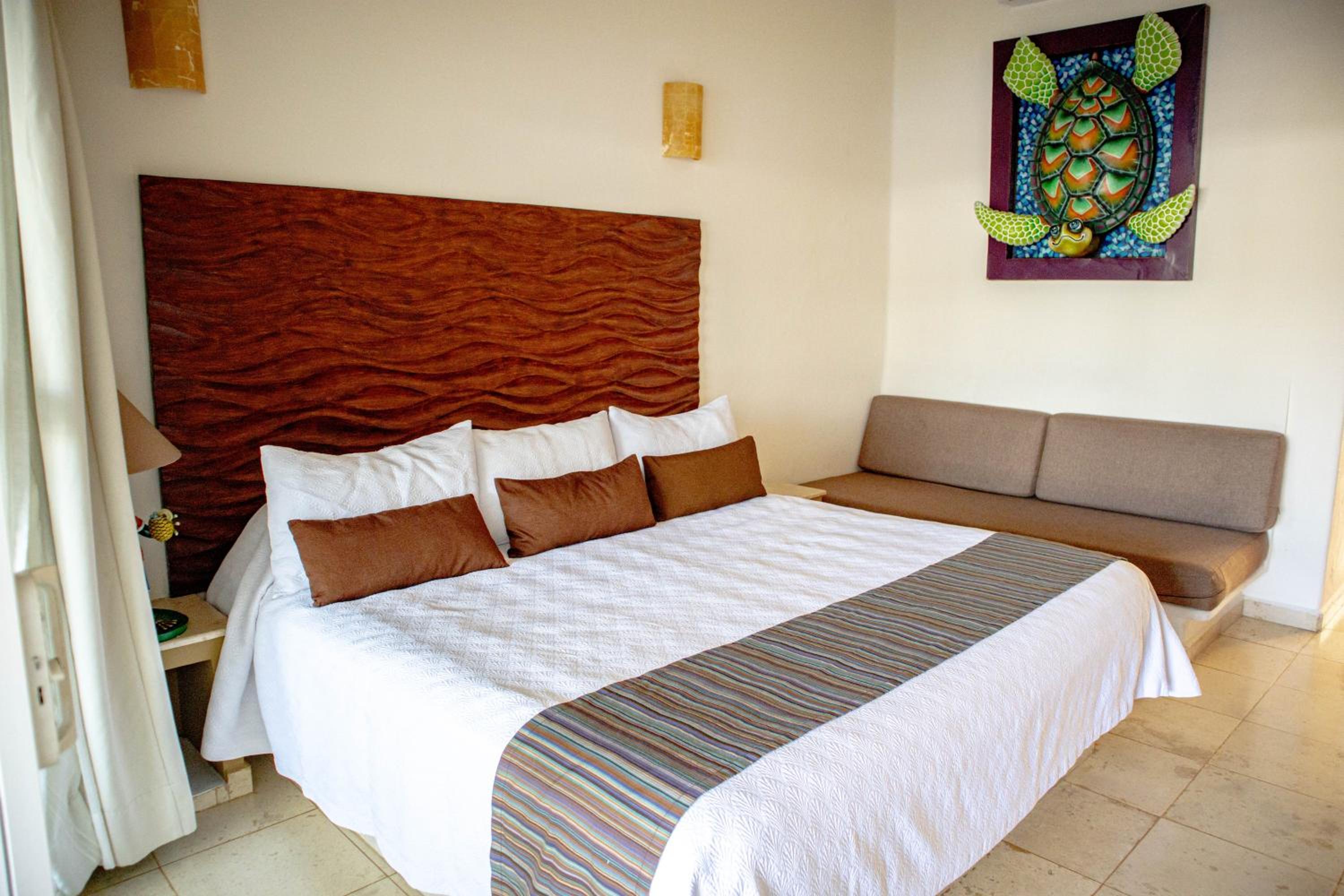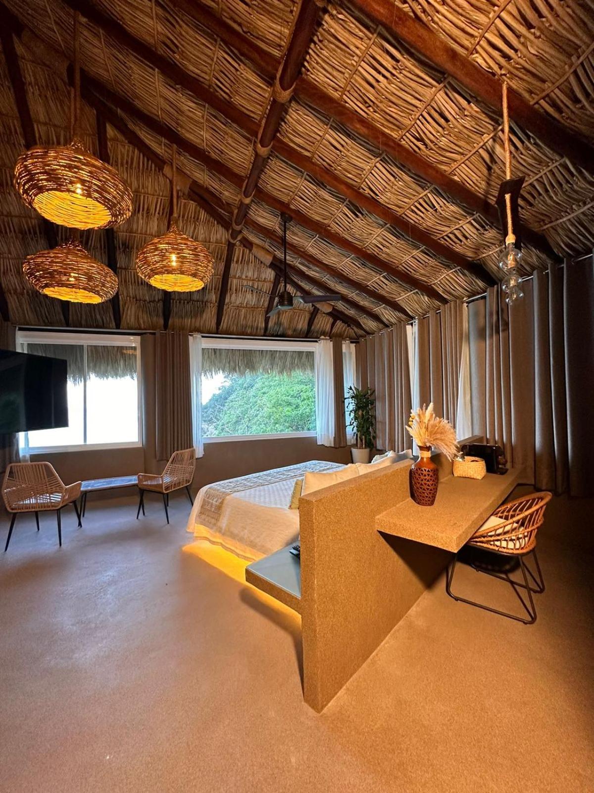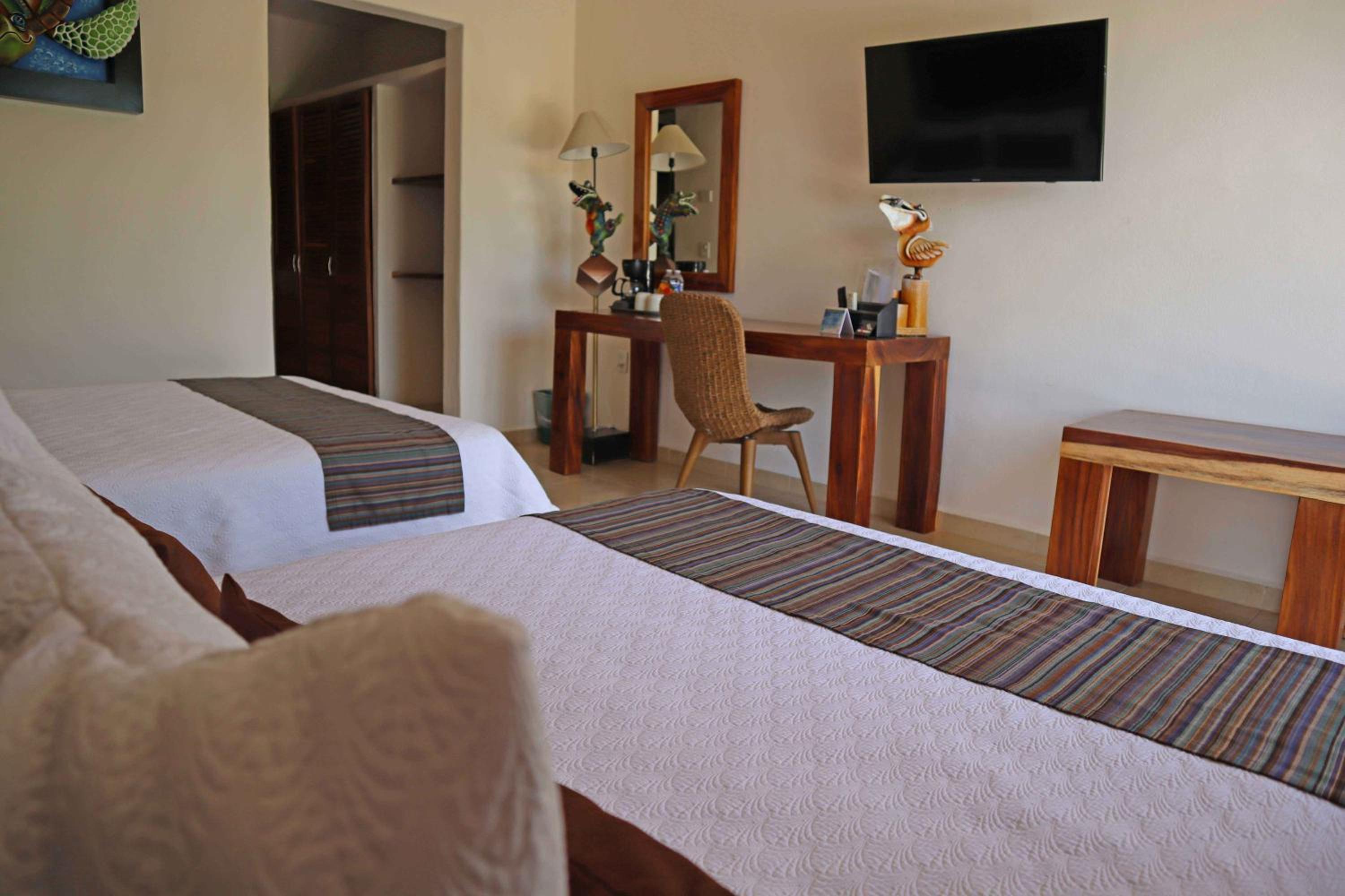 Quinta Bella Huatulco offers modern and bright rooms equipped with all the necessary amenities for a comfortable stay, including a flat-screen TV, air conditioning, and a private terrace with stunning sea views. The sleek design and thoughtful touches ensure a relaxing experience for guests.