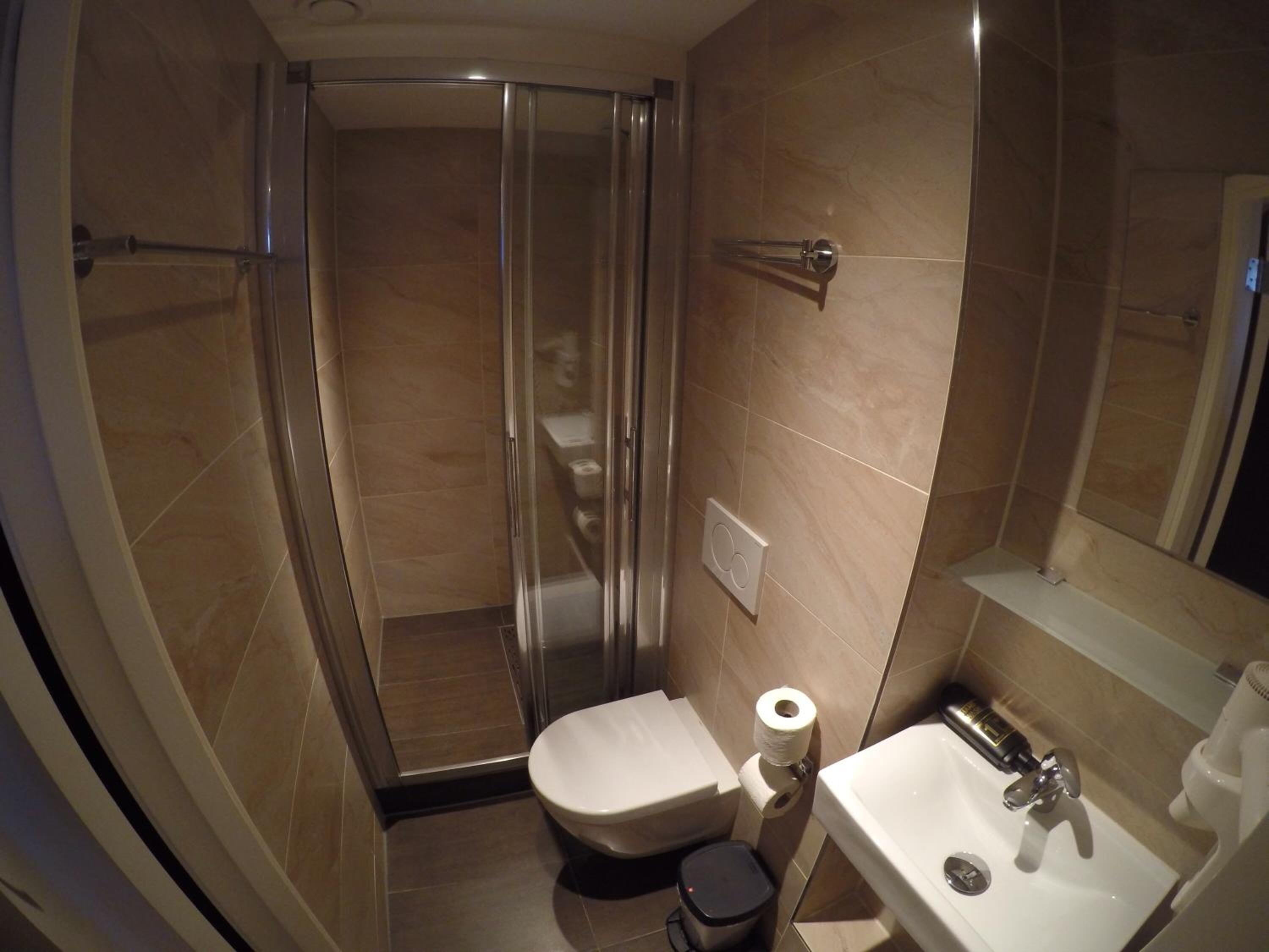Stanza microscopica a malapena si cammina attorno al letto, differente dalle foto che avevo visto. Il bagno anche se pulito puzza di fogna, impianto di aerazione forzata che fa rumore di notte