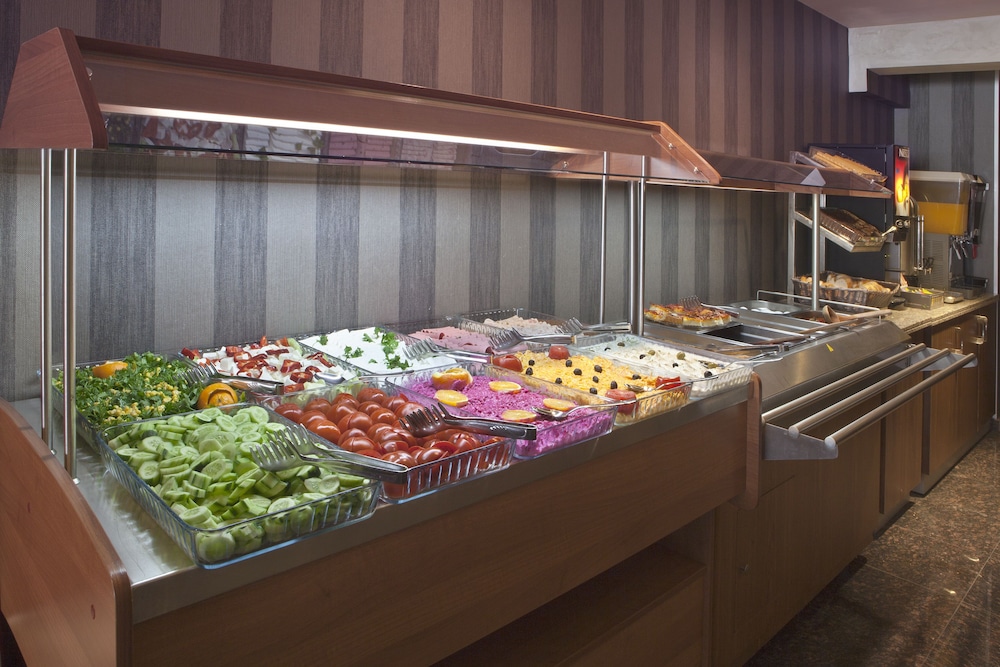 It included meat susage, eggs, lentil, fried vegetables, assortments of cheeses, brown and white bagutte bread cut up into slices, there was also tomatoes and cucumbers and yoghurt and fried pastry with cheese inside. I tried everything throught my stay and it was always hot and tastey. There was also cerial, selection of olives, and sweet spreads. I didnt really try much of that as i was full from the hot food.