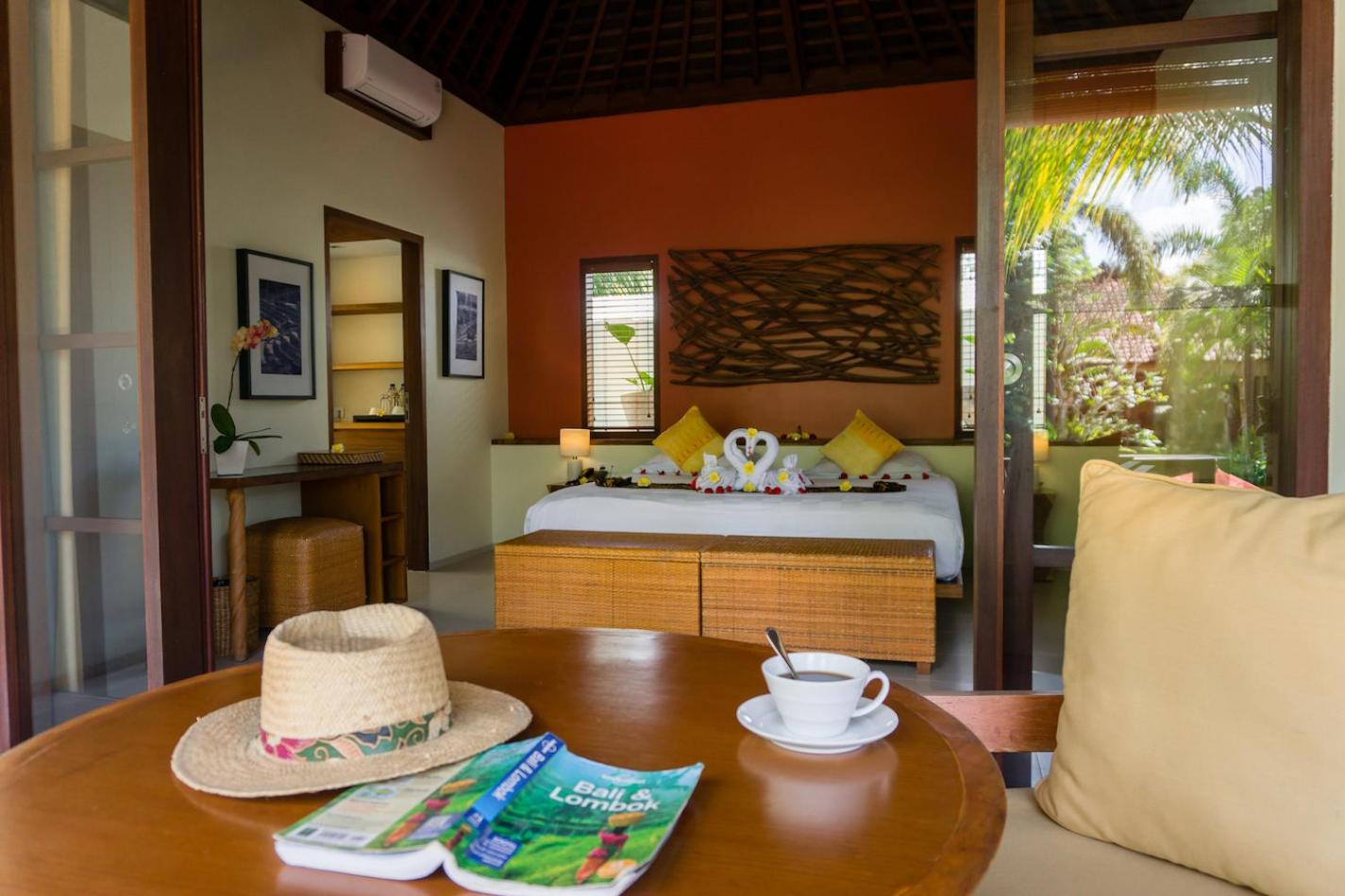 Lovely room and beautiful outdoor bathroom. Very clean. Location on a quiet road but easily walkable from the centre (and they can drop you off or pick up). I enjoyed a spa pedicure and complementary massage. Breakfast is nice and plentiful (western food) , great coffee. We like having it on the terrace. We also enjoyed the afternoon tea and snack, a nice touch. Overall a great base i ubud.
