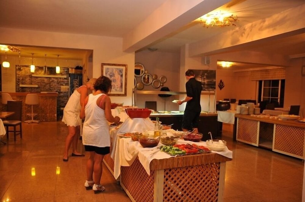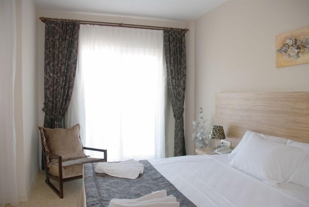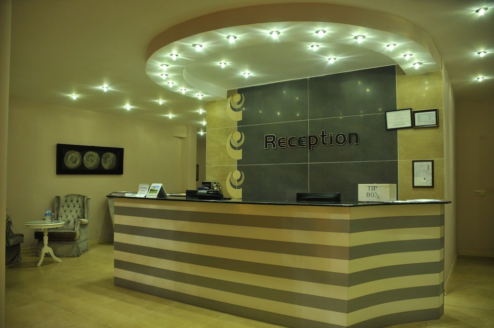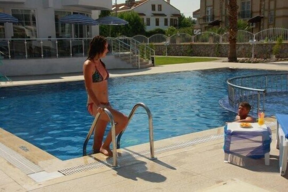 A lovely hotel with large rooms and balconies. Good AC. Staff extremely friendly and a very good Turkish breakfast. Large swimming pool with plenty of sunbeds and shade when needed.
