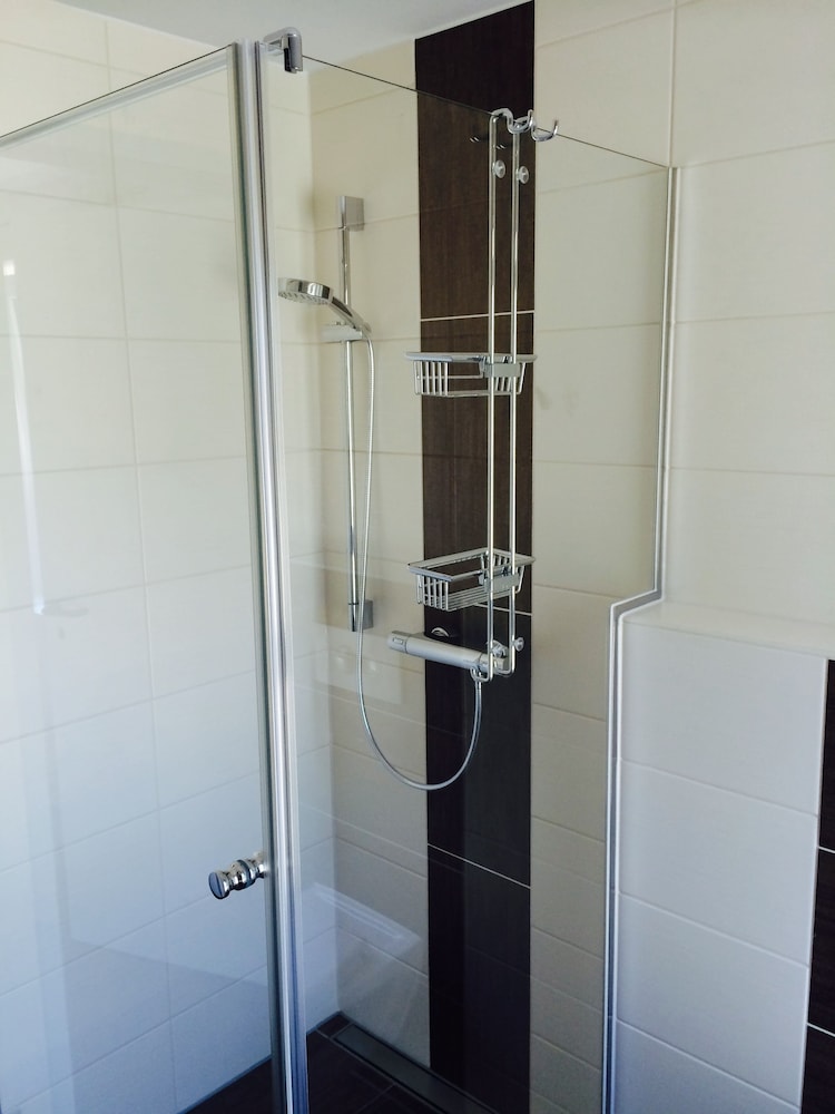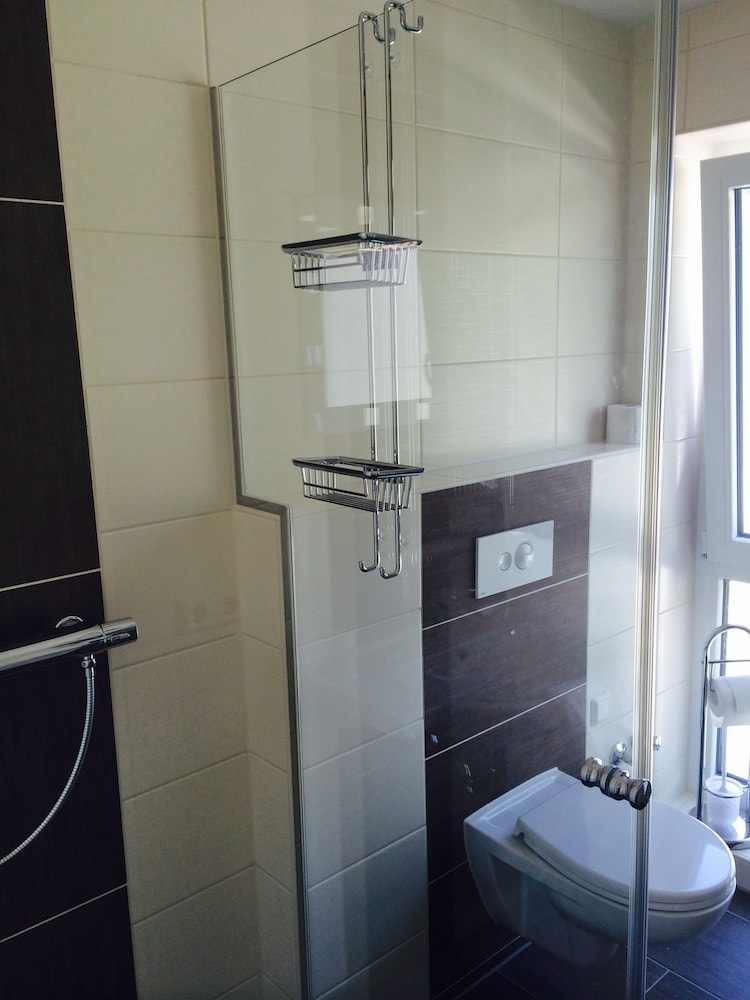 Størrelsen på badeværelset var okay, men placeringen af døren til brusekabinen gjorde det svært at komme forbi den, når man åbnede døren for at komme i bad.