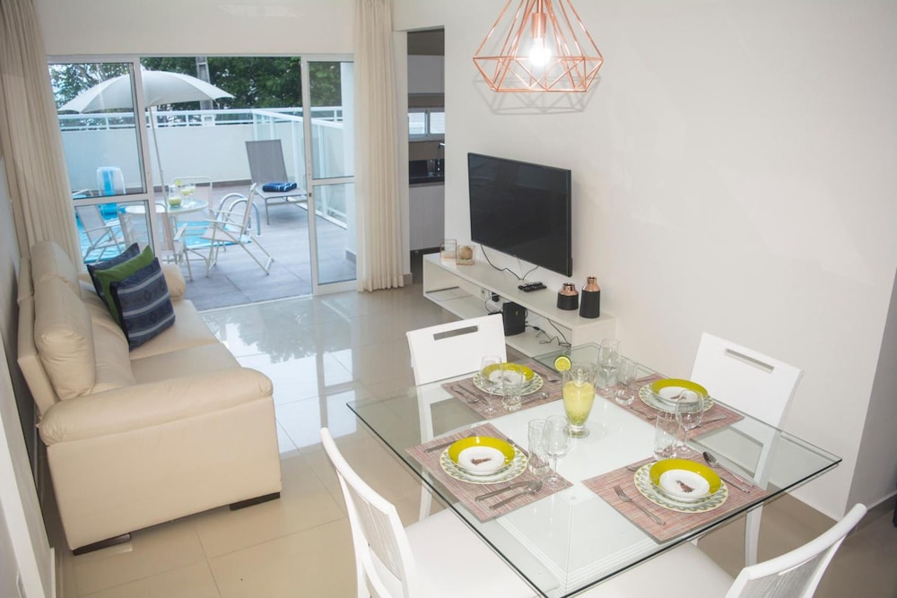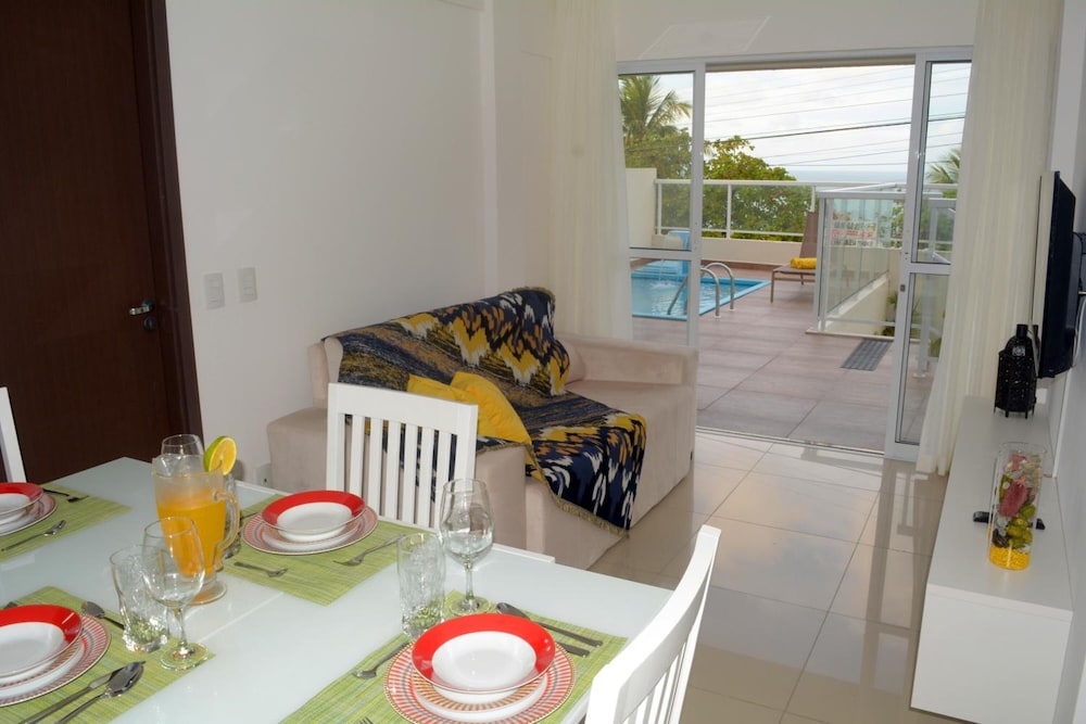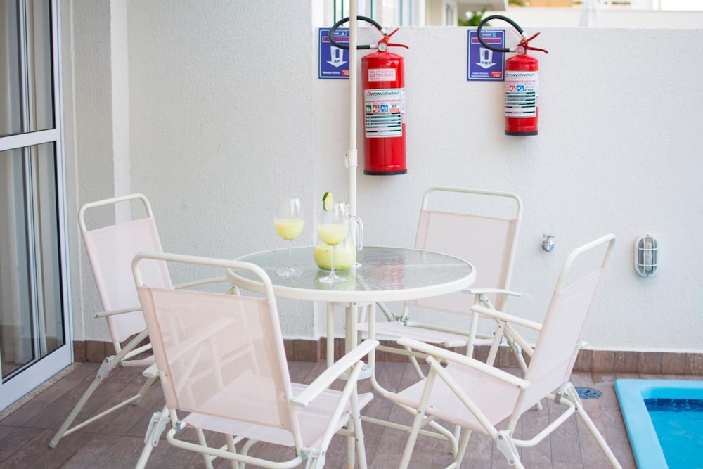 Espaço bonito, porém muito desconfortável as portas do quarto é pra frente da casa e é cheia de venezianas e tem um vidro enorme, a cortina parecia um pano velho que não cobria nada, a claridade do sol incomodava, e a privacidade era zero já que era muito transparente. Sem contar que paguei 30,00 a mais pelo meu filho e só tinha disponibilidade apenas de 1 ventilador para dois quartos diferentes. Não tem 1 copo para beber água, já que dizia que até Cooktop tinha. Tinha apenas a pia e um frigobar. O café da manhã é fraquíssimo quase não tem opção e o pão era muito duro. O que prestou mesmo foi apenas a piscina, sinceramente tinham era que me pagar para passar mais uma noite ali. Não voltarei com certeza.