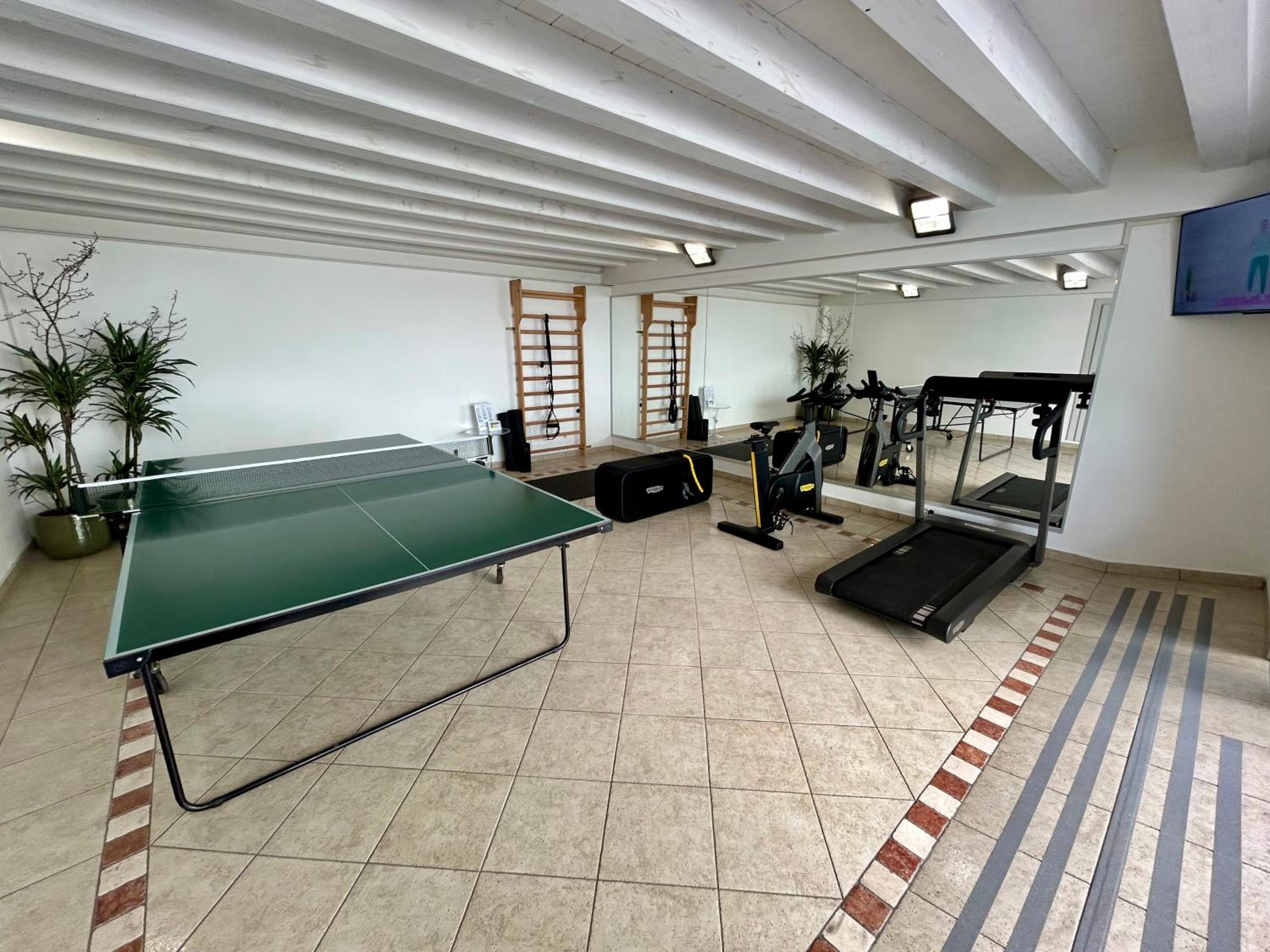 Our 2br 2bath unit on the 3rd floor was excellent. Two couples had plenty of privacy with one br ensuite and the other accessing a large bathroom down a hall. Pleasant living room and efficient kitchen with induction stovetop. We did not try the hot tub jacuzzi but witnessed a family with small children having a great time. I suspect the temperature is not what North Americans expect but that is rare in Europe except for a few hot springs. The check in and service was top notch. Very clean and tidy. The secure parking lot is tight but serviceable. We had a second car and got permission to park it on only two nights. There is an excellent public carpark down one half block. Friensds brought a dog and that was fine but with a charge.