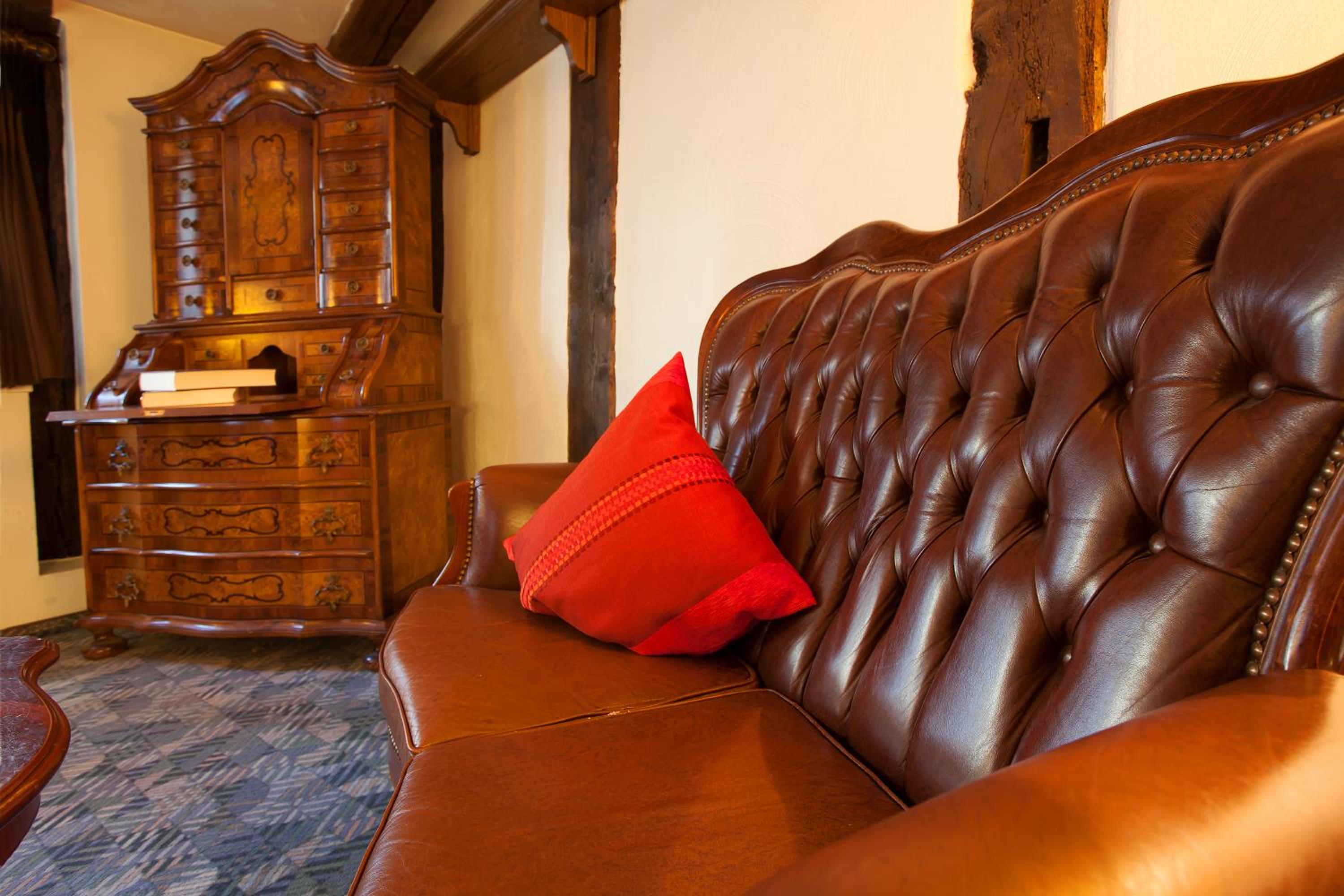 Rustic Elegance: Step into a bygone era with our 15th-century timber-framed building boasting exposed wooden beams and cozy rooms with all the modern amenities you need.
