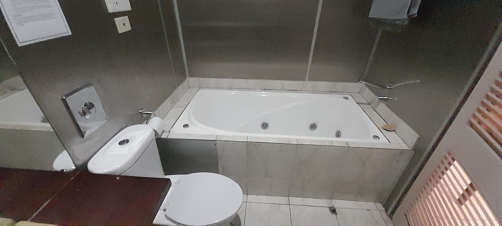 Hi, I stayed at De Vos on the Park for three nights on my business trip alone. I didn't go walking around after dark as it was not recommended but because the MacDonalds was literally next door, it was easy to get some food after dark. The staff were also super friendly. The facilities are as expected from a 3 ish star hotel. I would definitely recommend this place if you're on a budget.