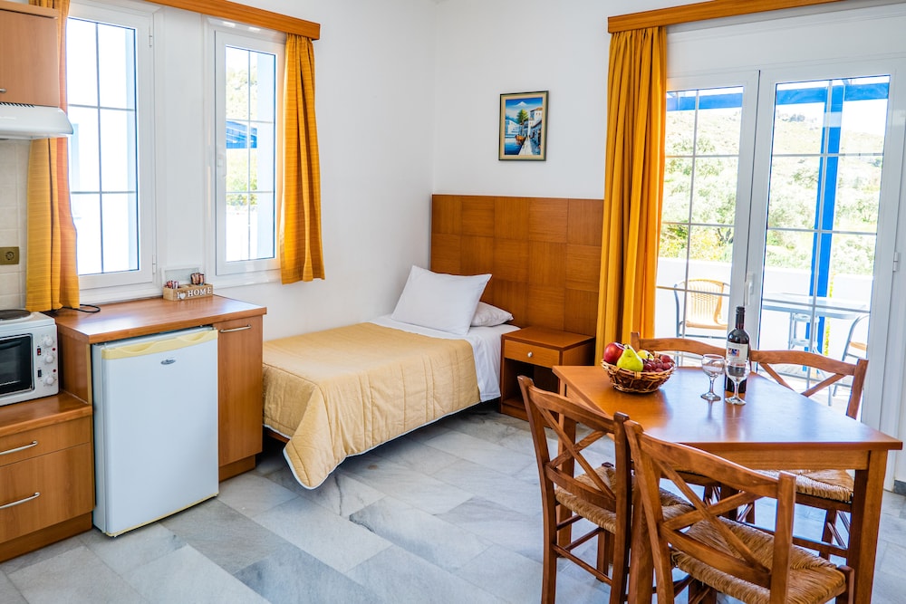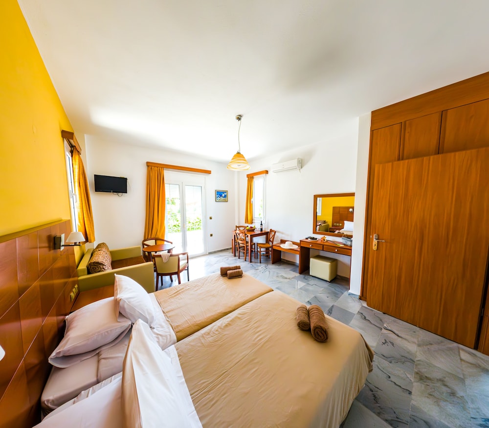 Appartements hôtels que nous avons énormément appréciés, près d'une petite ville pas encore trop touristique comme dans le Nord. Situés en dehors de la ville, dans un bel endroit très calme, les appartement sont confortables. La climatisation est efficace (ce qui n'est pas le cas de tous les hôtels) et comprise dans le tarif. Tout est très propre. Nous avions même 2 terrasses opposées pour manger à l'ombre à tout moment de la journée. Très bon accueil, comme dans toute la Crête. Nous n'avions réservé qu'une journée sur un périple de 15 jours et nous avons regretté de ne pas pouvoir y rester plus longtemps.