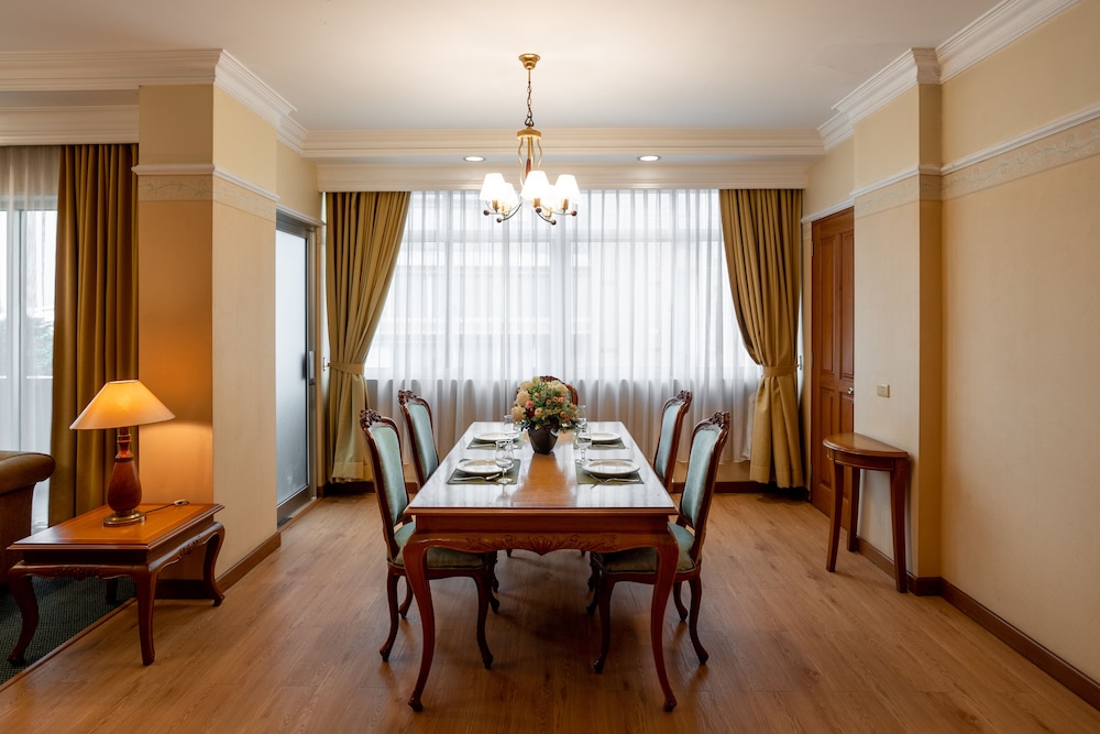 Opposite to the hospital that I went and in the centre of the city, easy to order the foods by on line gojek/grab and the pool is open as a plus