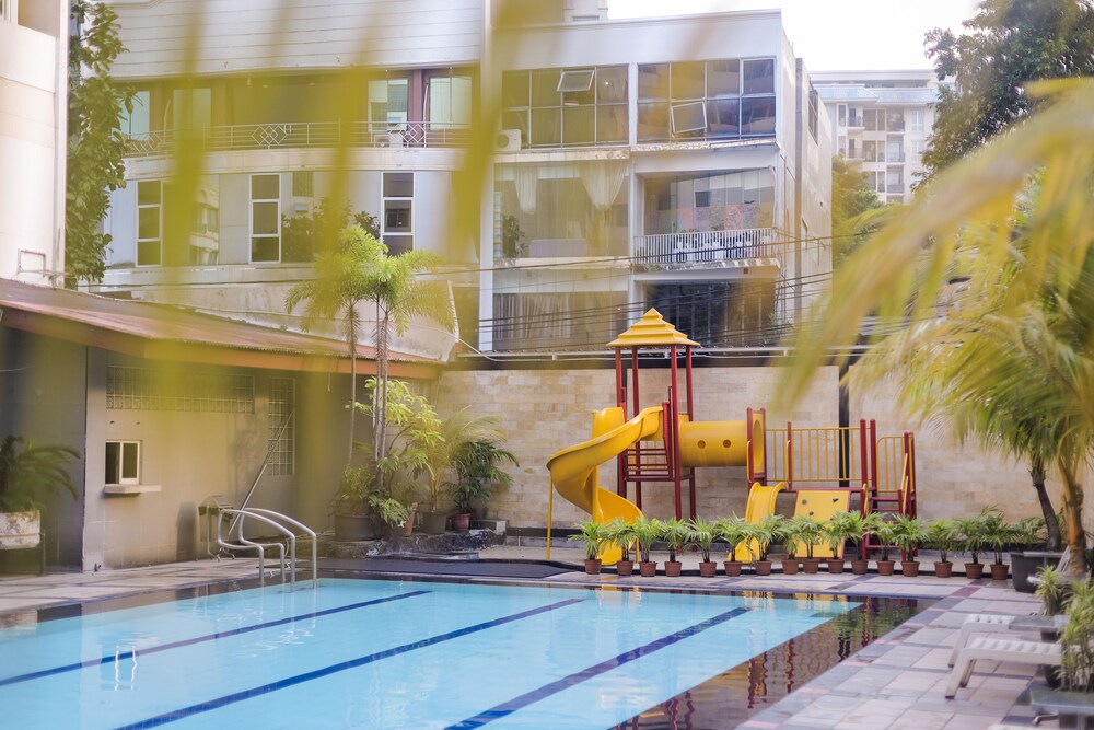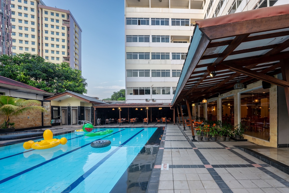 Good value hotel. The rooms are spacious and clean. The staff are super friendly. It has a swimming pool and a small playground for kids. Buffet Indonesian breakfast with fruits and toast.