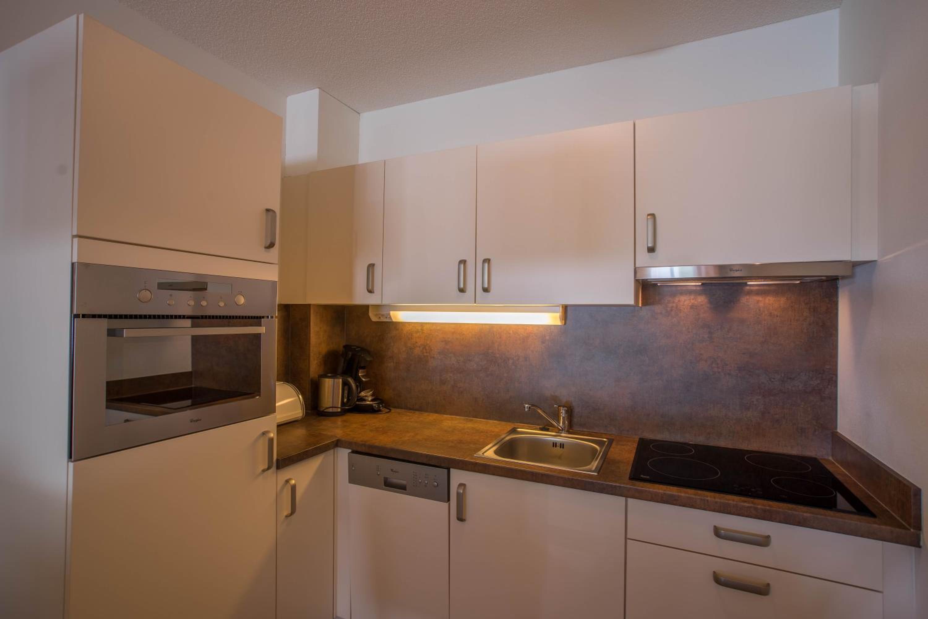 Bij aankomst dachten we op straat: wat is dit een vreemd gebouw. Onze mond viel open toen we de deuren open deden van ons 6 persoons appartement. Wat een luxe. We zijn al in verschillende appartementen en hotels geweest in Europa, maar deze was heel mooi en modern ingericht. Met 2 WC's, 2 douchecellen, heerlijke bedden, een home cinema set, een mooi uitzicht met een modern ingericht balkon, eigen parkeerplaats onder het complex, zeer snelle Wifi, en een heerlijk restaurant in het gebouw. Verbeterpunten: geef gasten meer faciliteiten om afval te scheiden als dit zo gewenst is (nu vaak op en neer lopen naar afvalruimte) en geef informatie over de nabijgelegen bouwwerkzaamheden.
