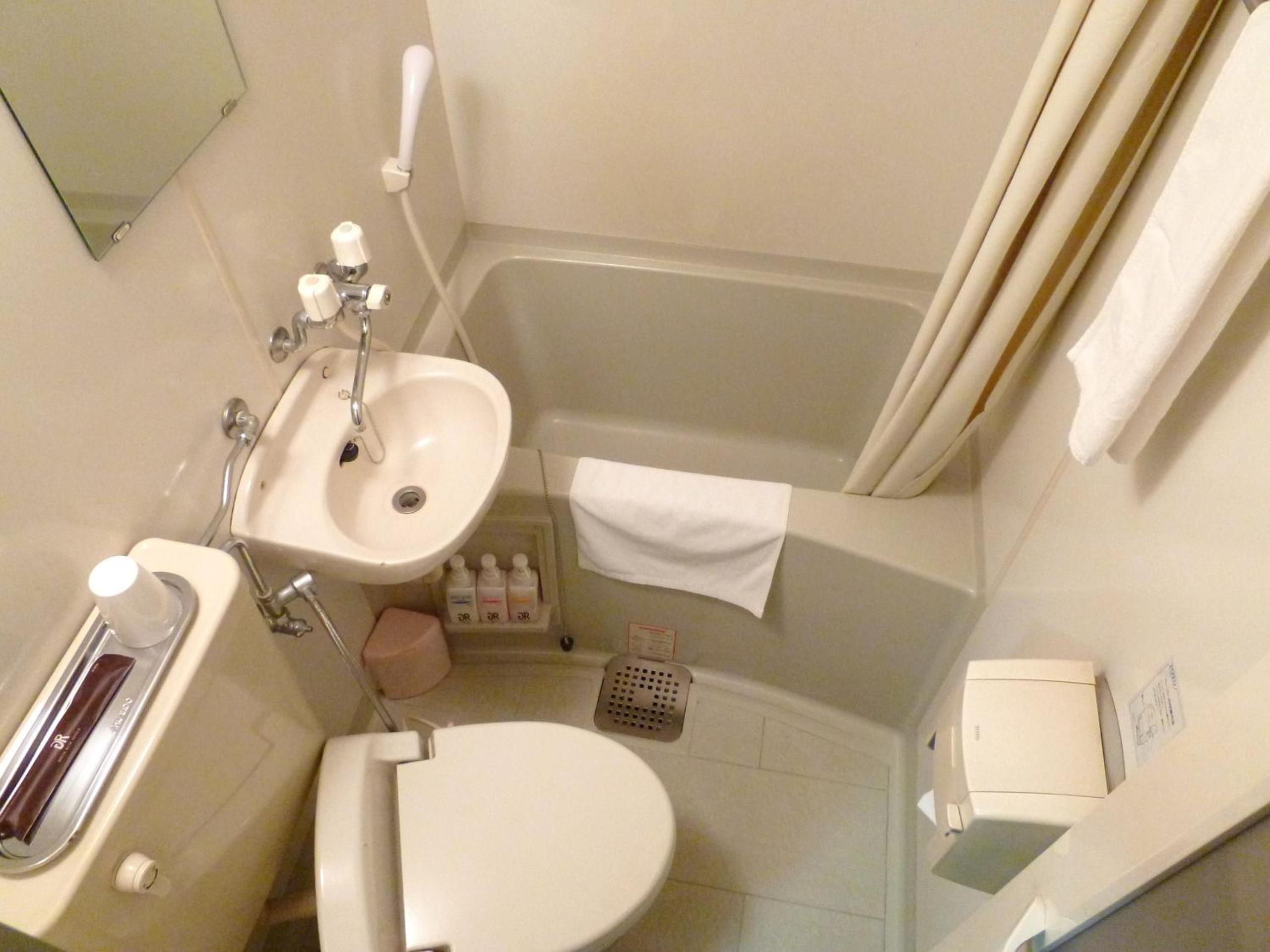 ユニットバスのカーテンの丈が短く水がトイレ側に漏れる。