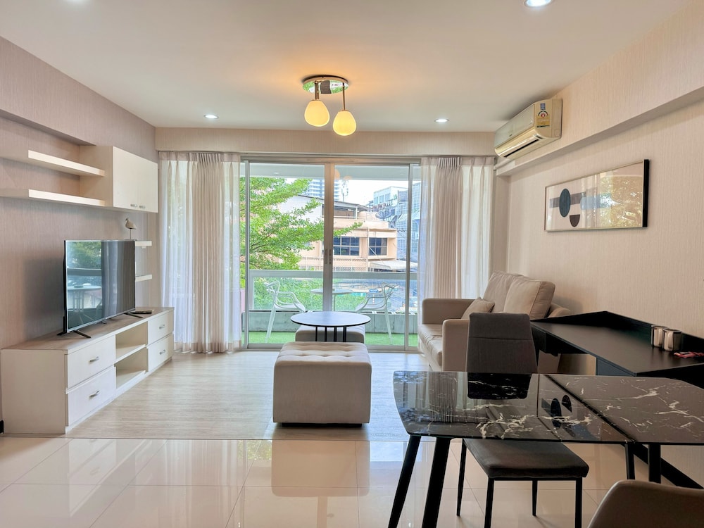 We love the balcony space and how the breakfast got served in room! Tasty local and international food. Clean and warm at heart! I mean it is just like a home in BKK! Perfect for our family with a kitchen! We did some homecooked food and enjoyed eating in a balcony! Good location!! Easy to get taxis or GRAB anytime!! Downtown area in a charming neighbourhood! We loved the spa and street food nearby. 7-11 is just next to the apartment!