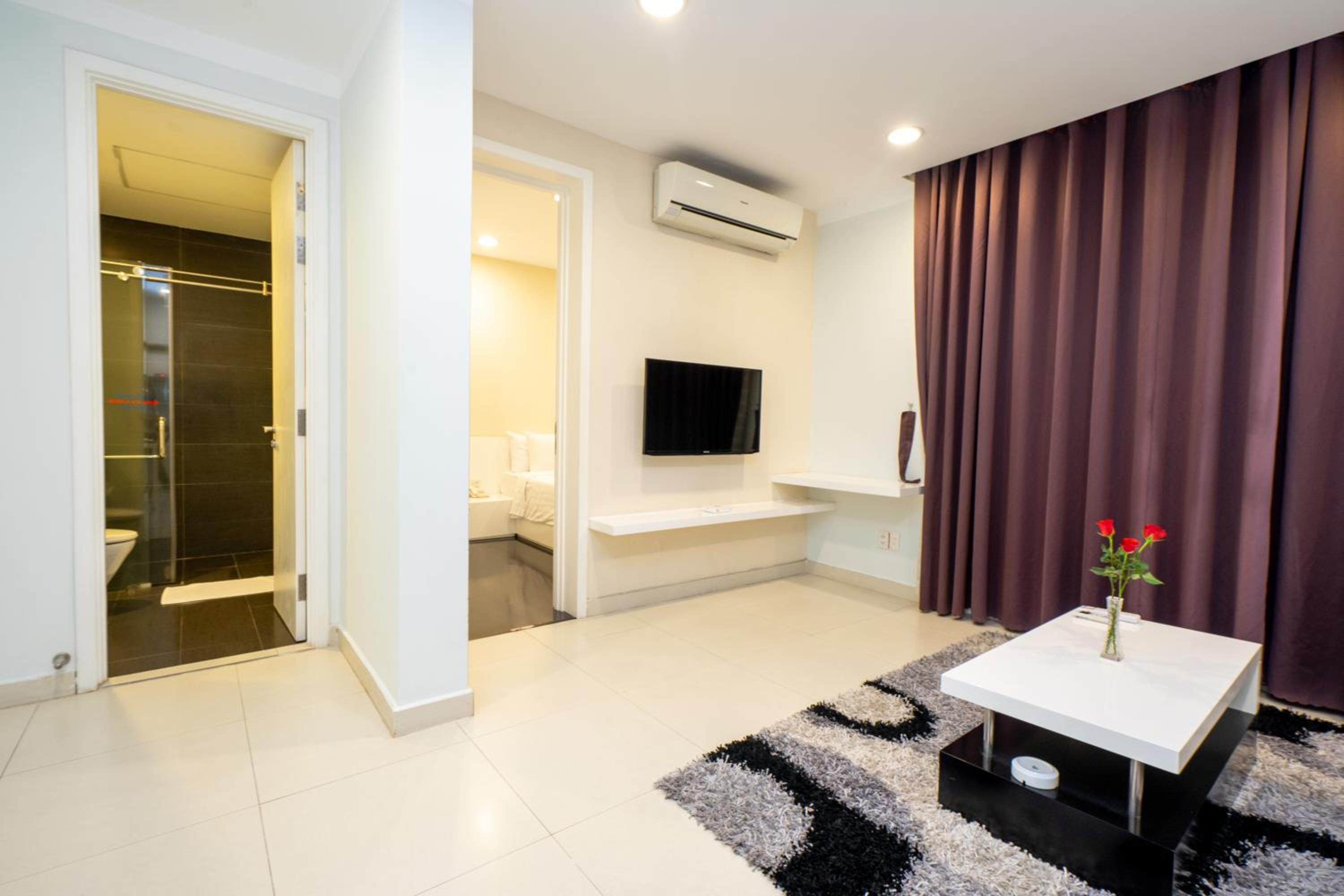 Centrally located in Thu Dau Mot, Becamex Hotel Thu Dau Mot offers modern and homely accommodation with free WiFi access throughout the property. It features an outdoor pool, fitness centre, and sauna facility. Offering views of the city, air-conditioned suites are furnished with tiled flooring, in-room safe, a dining table, and a living room with sofa and flat-screen cable TV. Suites have a kitchenette equipped with a fridge and electric kettle. En suite bathrooms include shower facilities, bathrobes, and free toiletries.