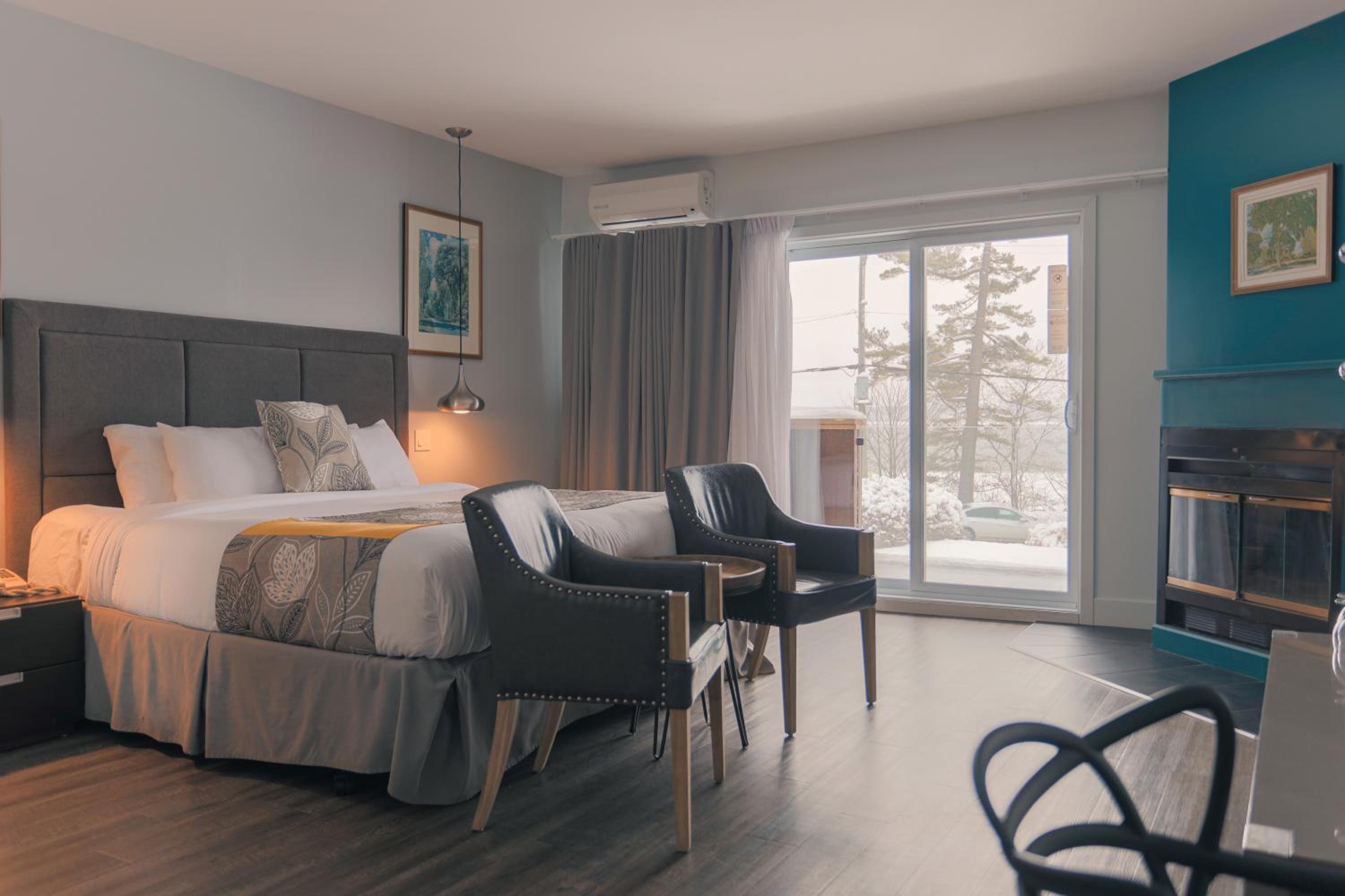 The room was clean and neat. The little desk area was perfect for my laptop. The table and chairs at the foot of the bed was perfect for morning coffee. The view of Lac-Brôme was breathtaking. The restaurant downstairs was first class and the food was perfectly prepared and delicious. We thoroughly enjoyed our stay.