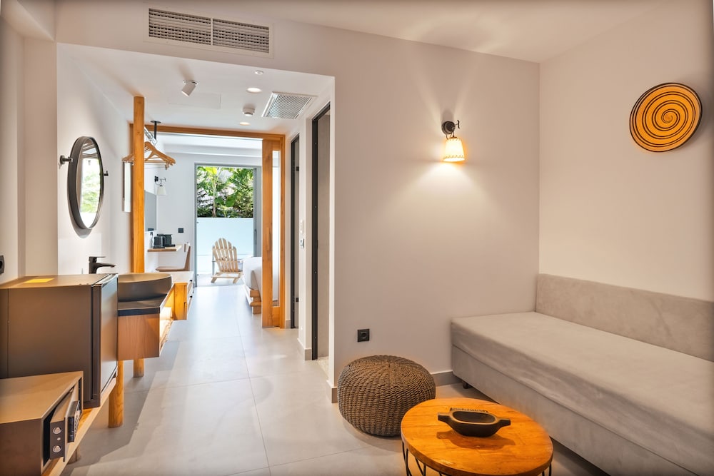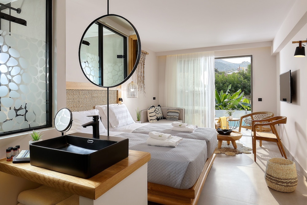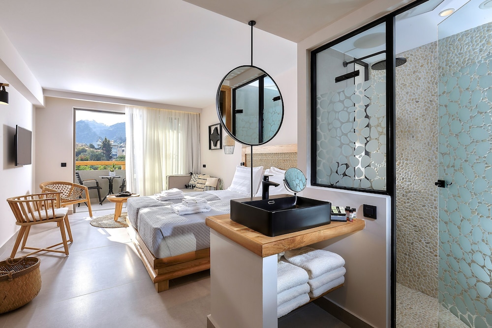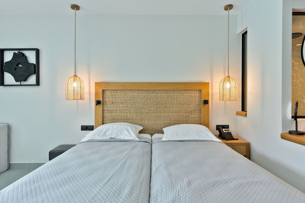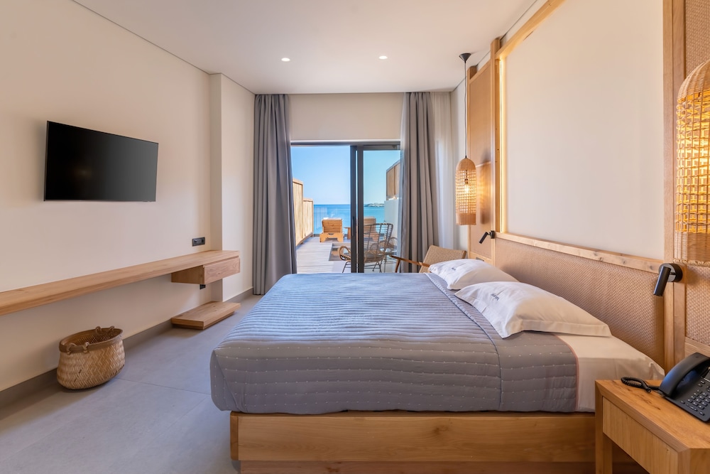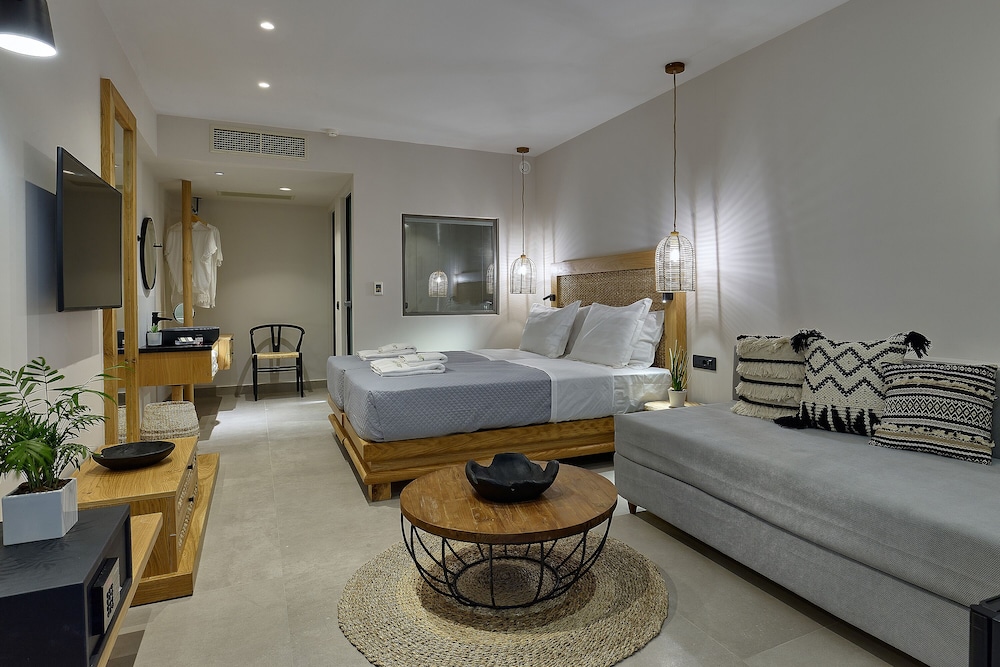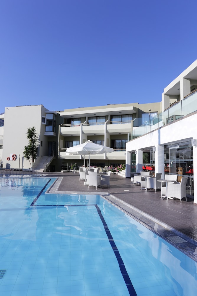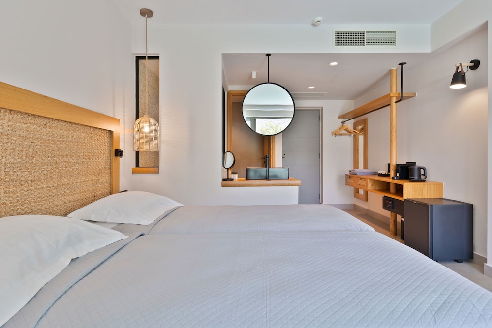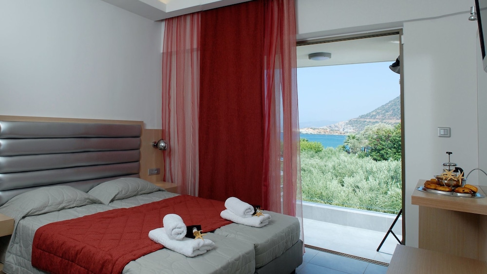 Très bel hôtel, suite spacieuse, propre et bien équipé. Seul hic, l'accès en voiture pour les bagages. La rue est très pentu et pas vraiment possible de garer sa voiture. Sinon le buffet est délicieux, de 19h à 21h00. Les parasols à la plage coûtent 20€ les 2 pour la journée, c'est quand même très chère. Plusieurs tavernes et commerce accessible à pied. Que du bonheur.