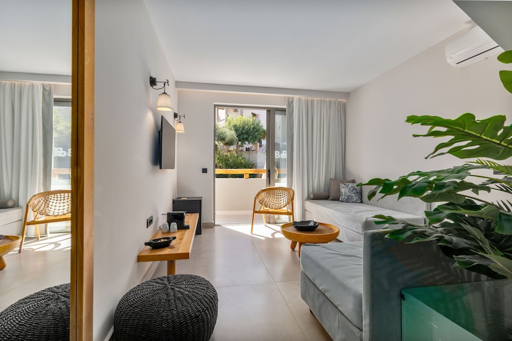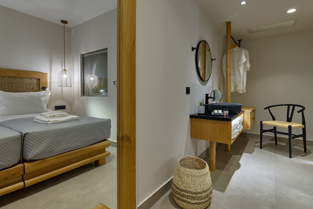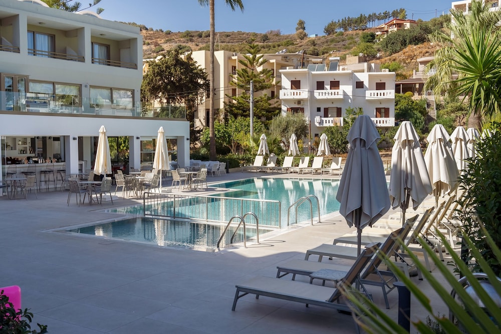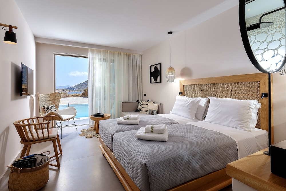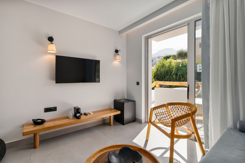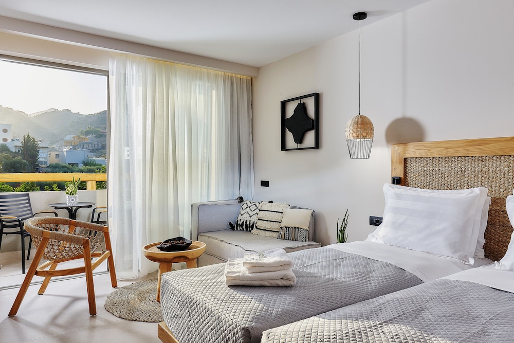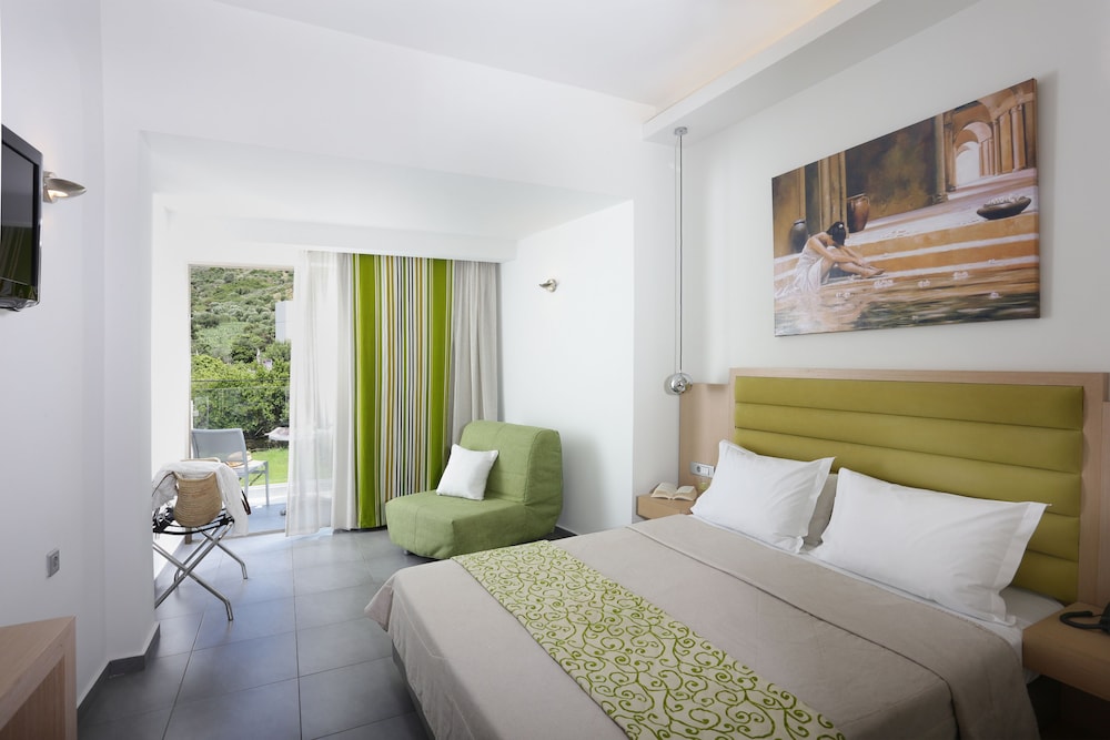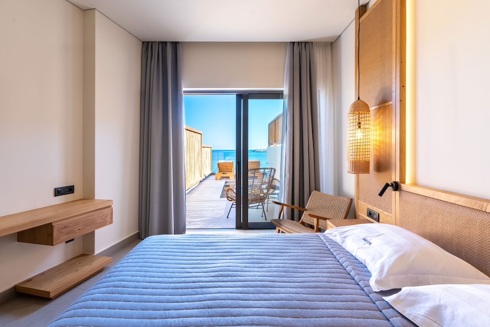 Très bel hôtel, suite spacieuse, propre et bien équipé. Seul hic, l'accès en voiture pour les bagages. La rue est très pentu et pas vraiment possible de garer sa voiture. Sinon le buffet est délicieux, de 19h à 21h00. Les parasols à la plage coûtent 20€ les 2 pour la journée, c'est quand même très chère. Plusieurs tavernes et commerce accessible à pied. Que du bonheur.
