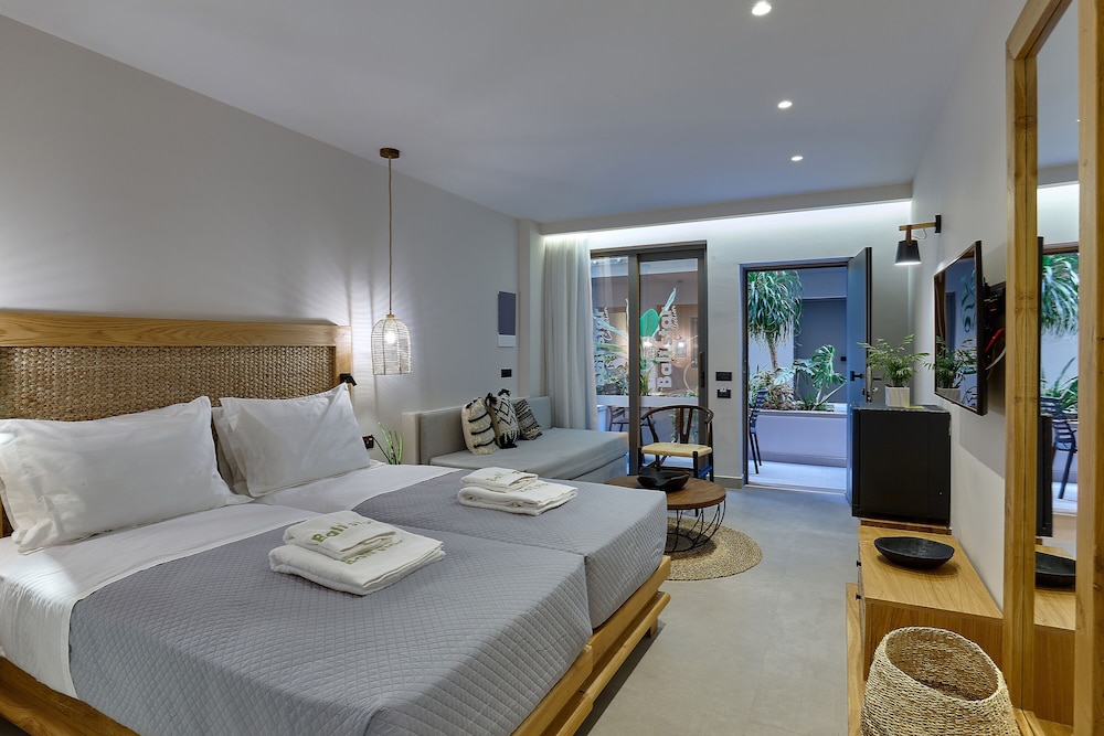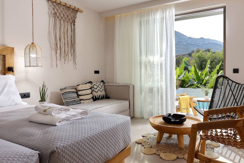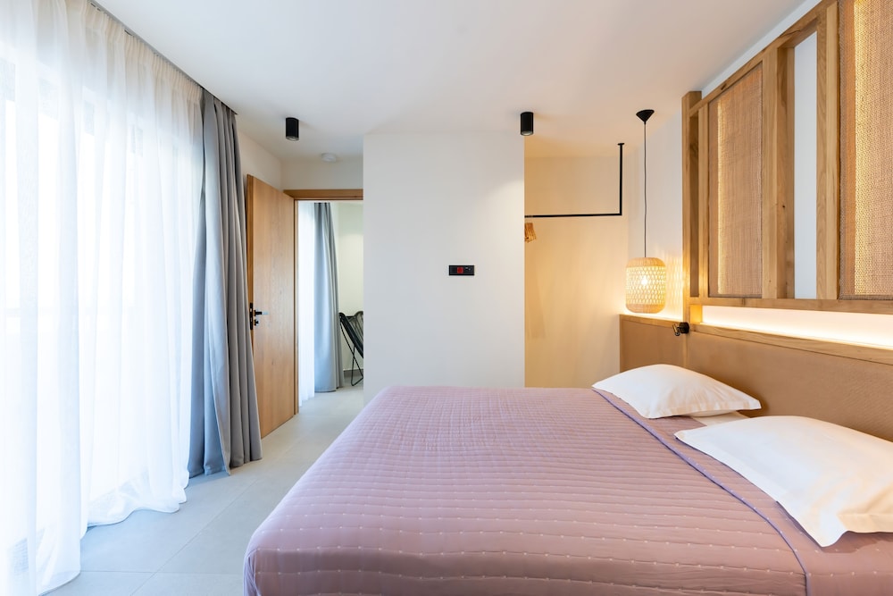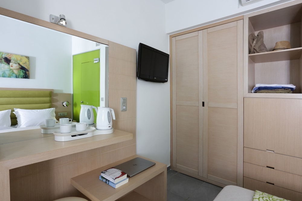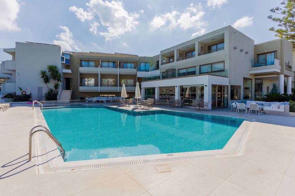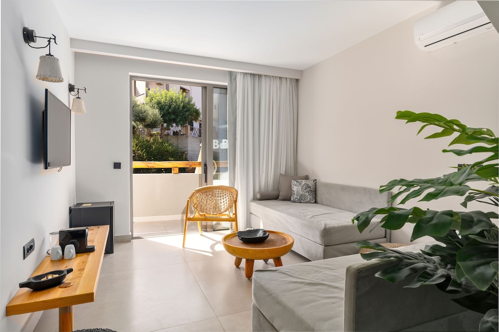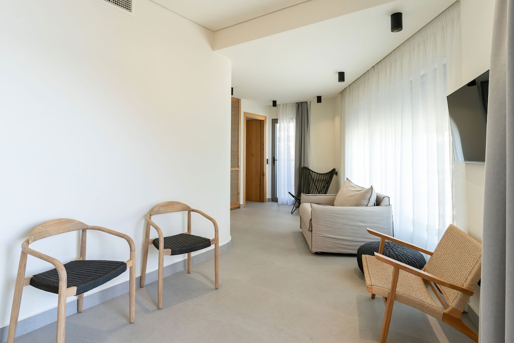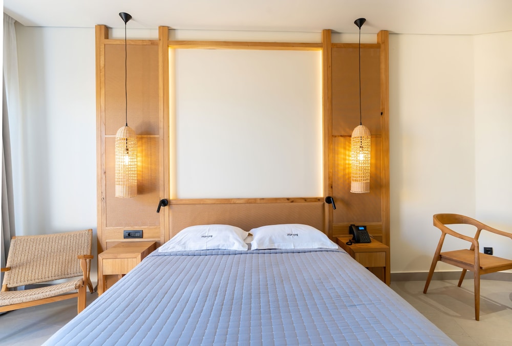 Très bel hôtel, suite spacieuse, propre et bien équipé. Seul hic, l'accès en voiture pour les bagages. La rue est très pentu et pas vraiment possible de garer sa voiture. Sinon le buffet est délicieux, de 19h à 21h00. Les parasols à la plage coûtent 20€ les 2 pour la journée, c'est quand même très chère. Plusieurs tavernes et commerce accessible à pied. Que du bonheur.