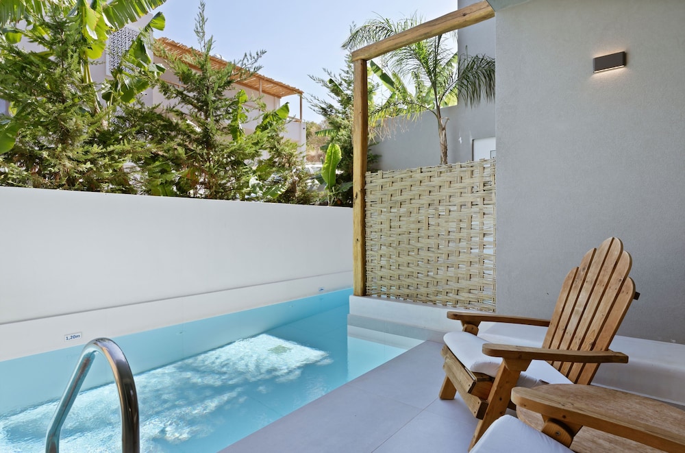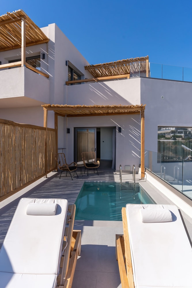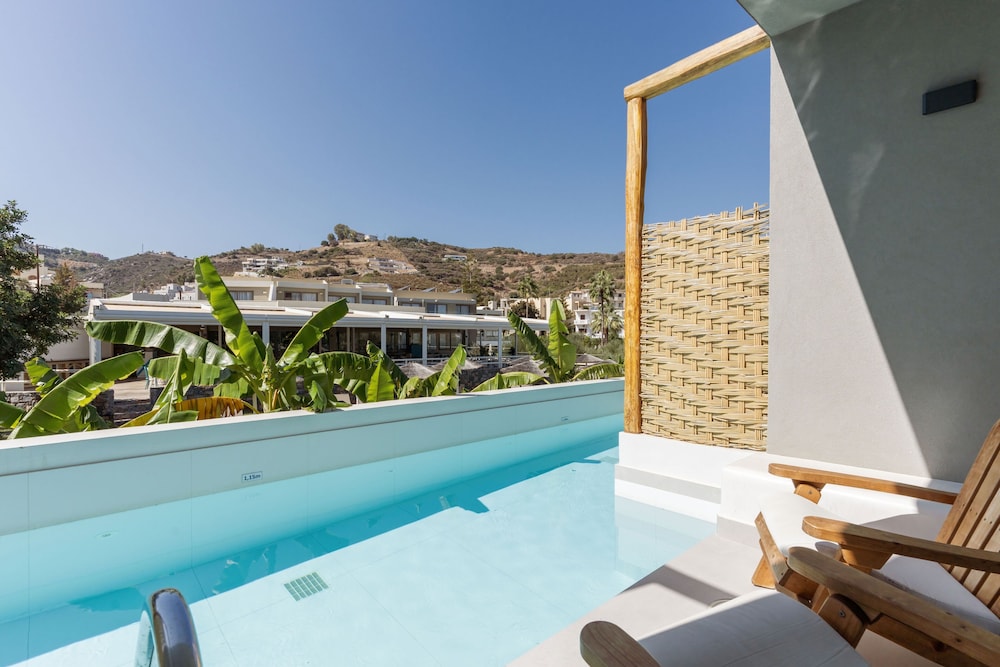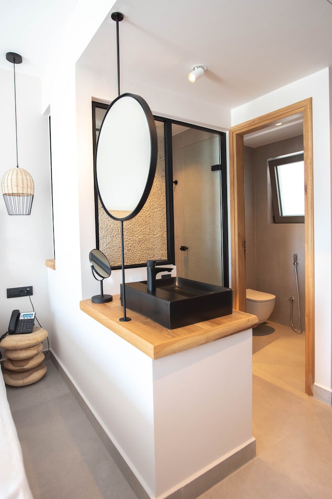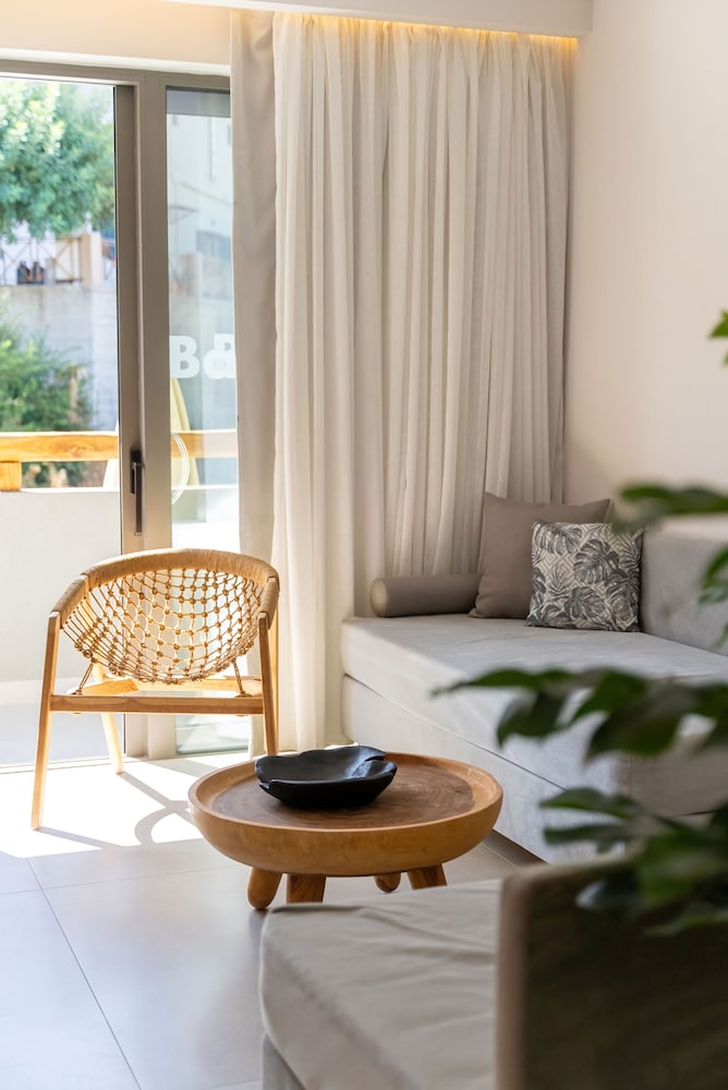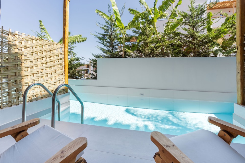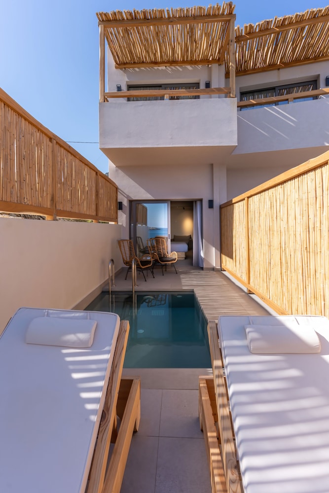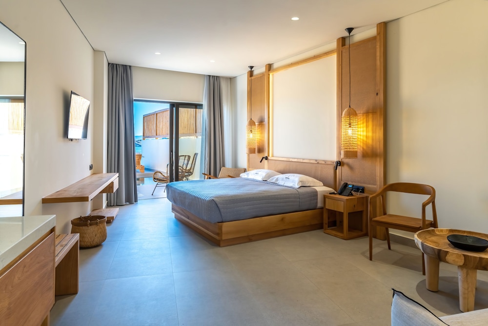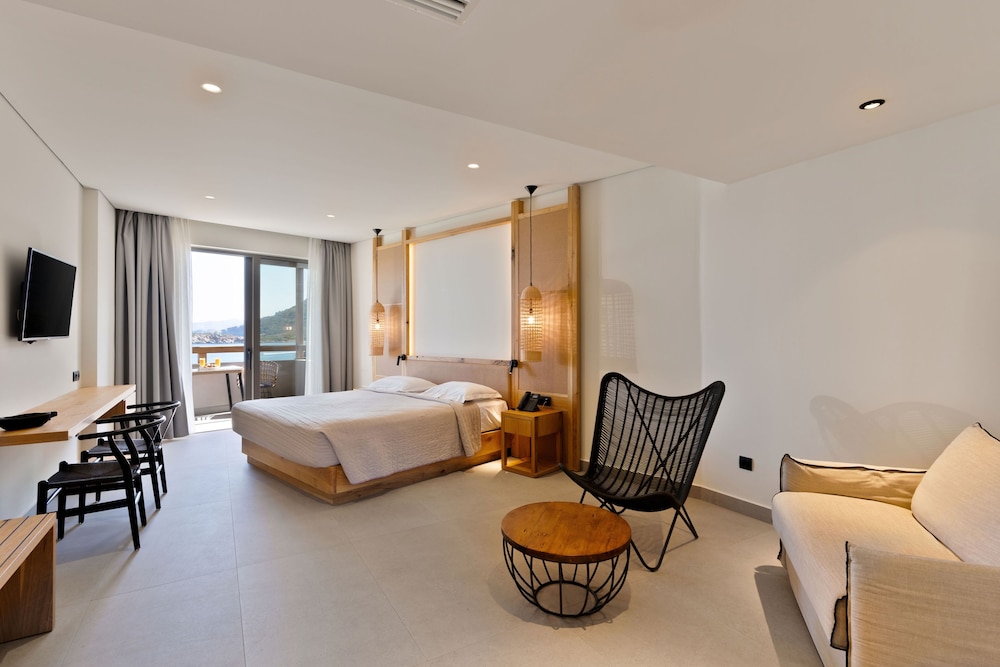 Très bel hôtel, suite spacieuse, propre et bien équipé. Seul hic, l'accès en voiture pour les bagages. La rue est très pentu et pas vraiment possible de garer sa voiture. Sinon le buffet est délicieux, de 19h à 21h00. Les parasols à la plage coûtent 20€ les 2 pour la journée, c'est quand même très chère. Plusieurs tavernes et commerce accessible à pied. Que du bonheur.