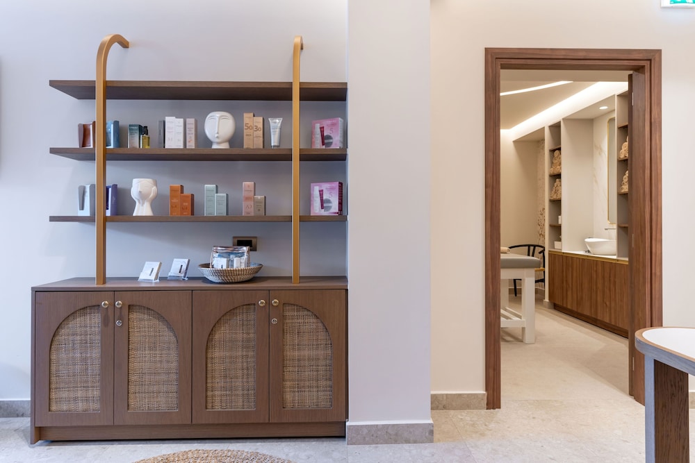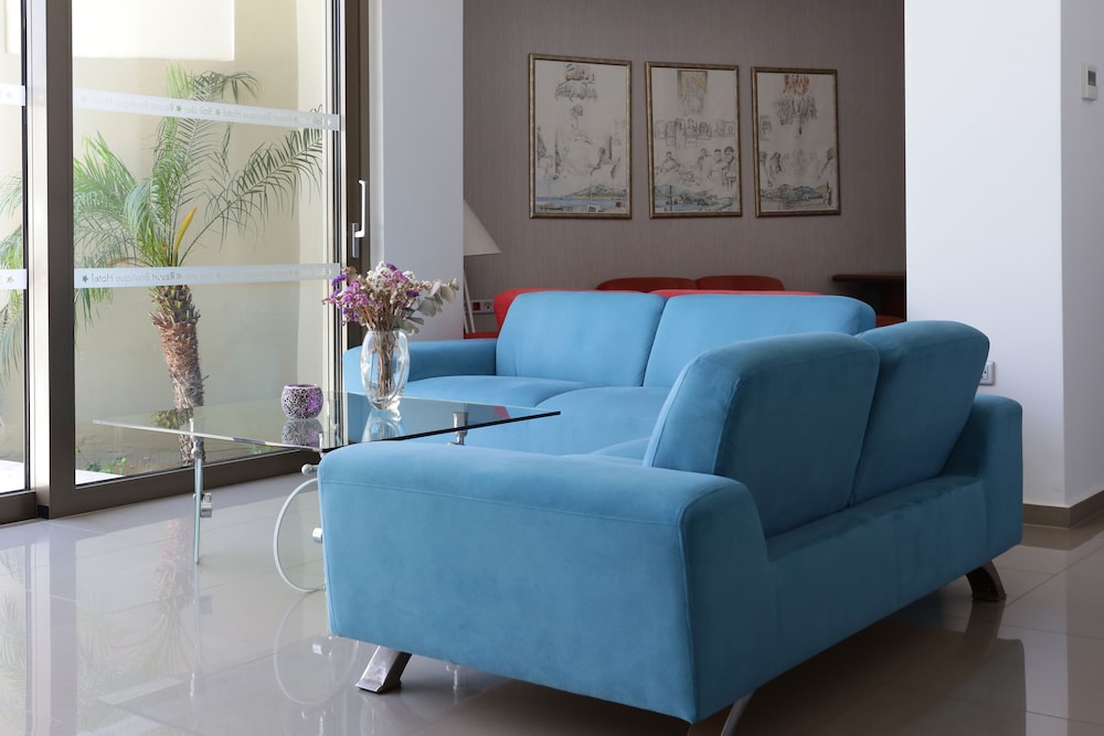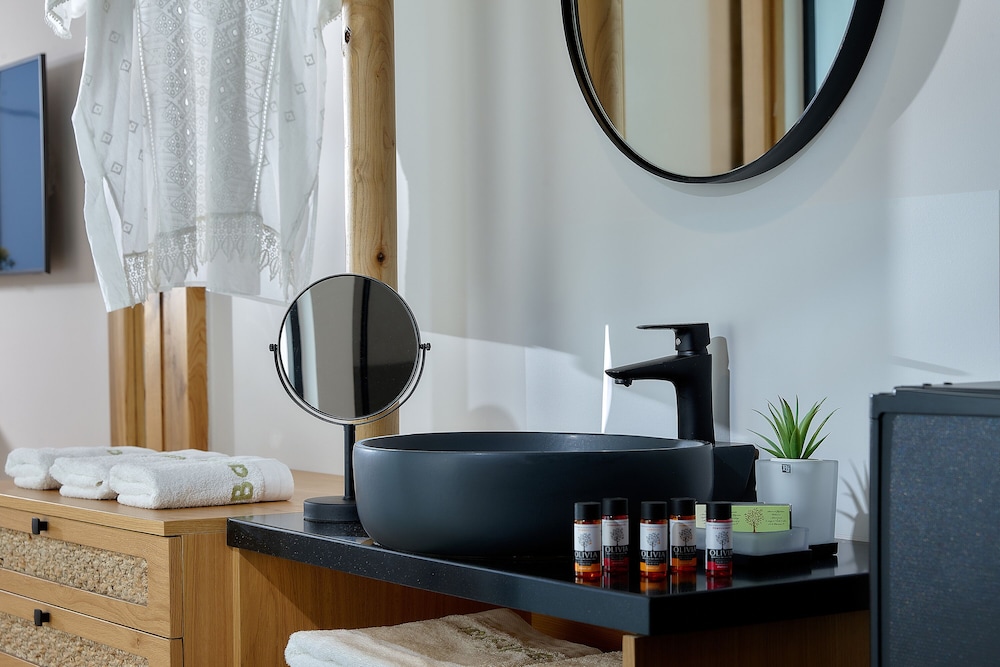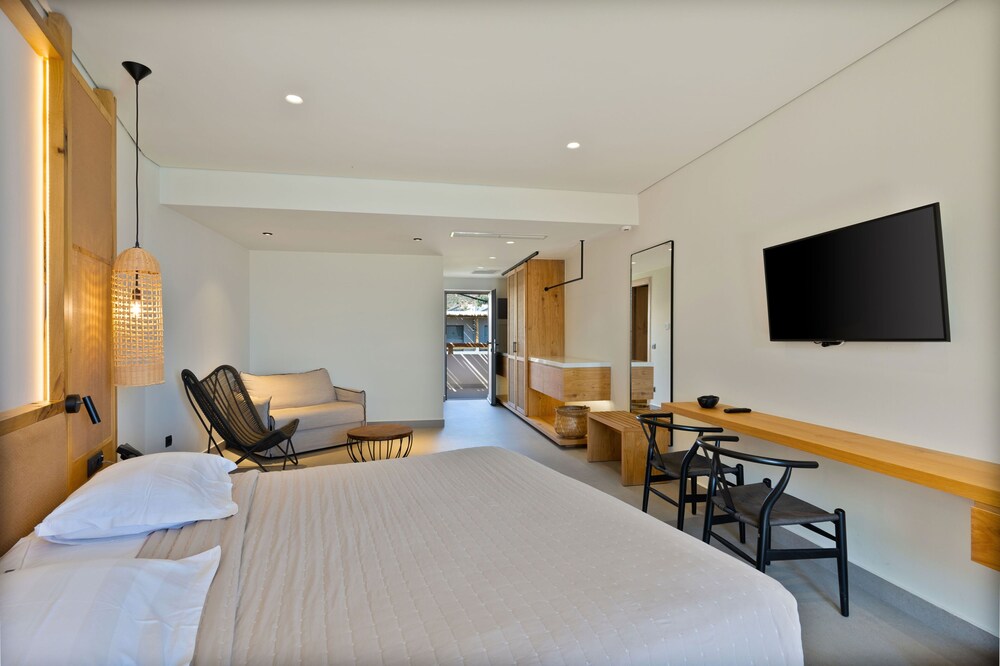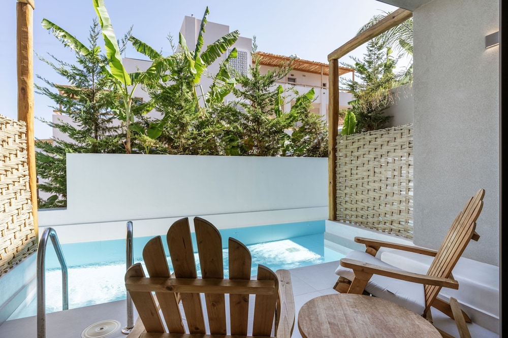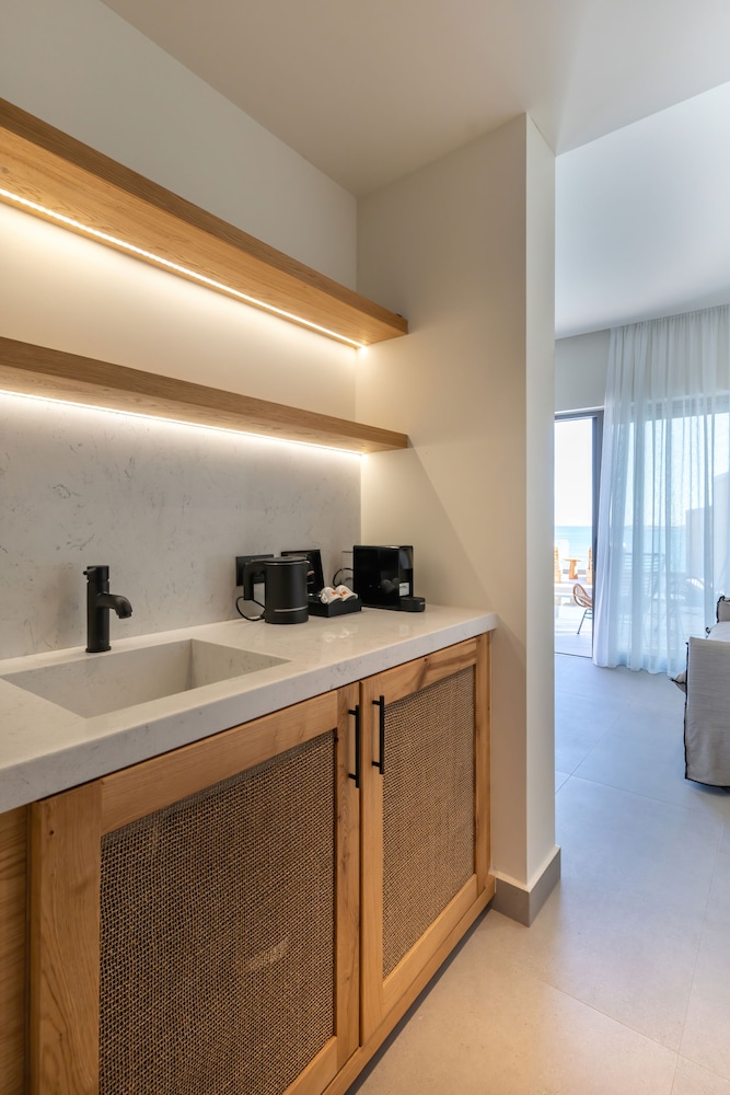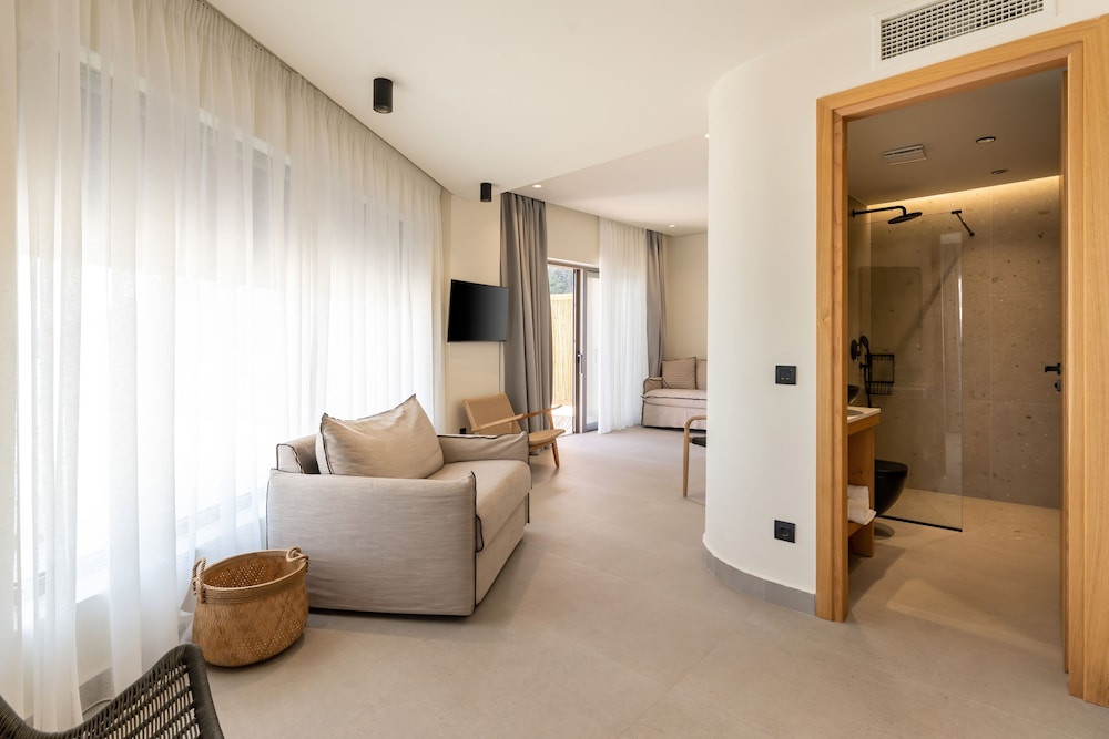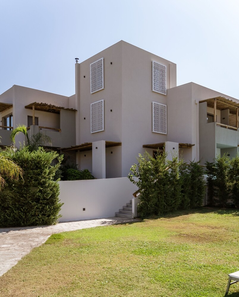 Très bel hôtel, suite spacieuse, propre et bien équipé. Seul hic, l'accès en voiture pour les bagages. La rue est très pentu et pas vraiment possible de garer sa voiture. Sinon le buffet est délicieux, de 19h à 21h00. Les parasols à la plage coûtent 20€ les 2 pour la journée, c'est quand même très chère. Plusieurs tavernes et commerce accessible à pied. Que du bonheur.