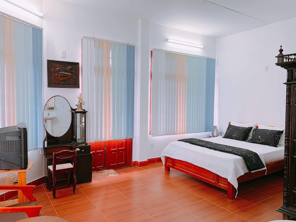Phòng thì khá rộng rãi, có cửa sổ, nhà tắm rộng rãi, nhưng ko có bàn để đồ, có 1 tủ nhỏ và đụng vào cái là đổ (vì đặt tivi trên nóc tủ).