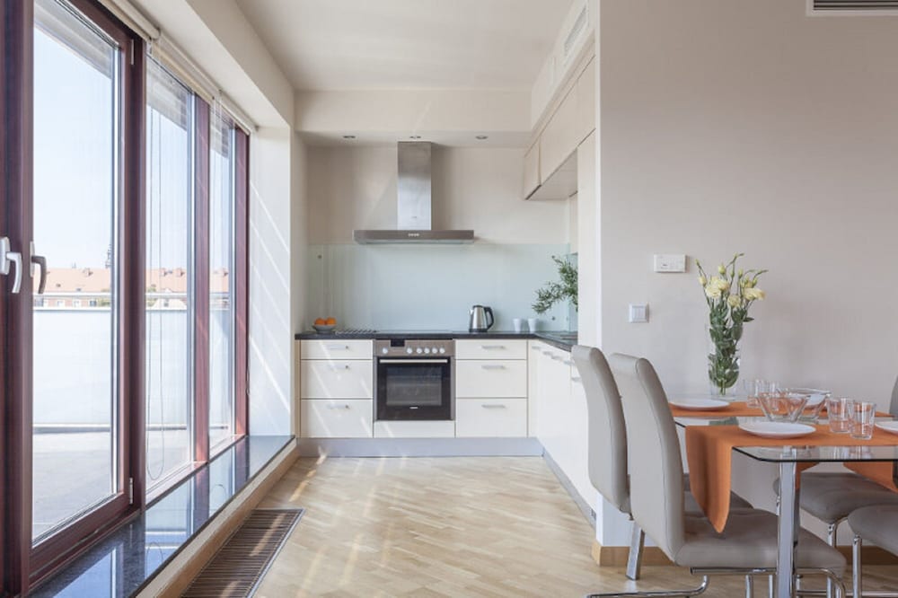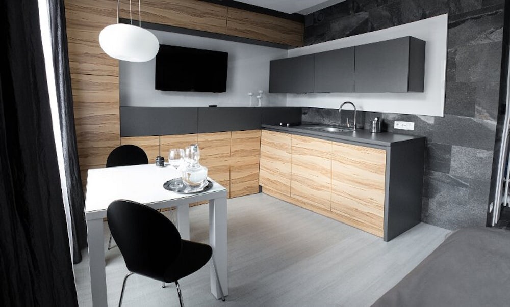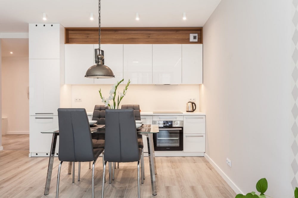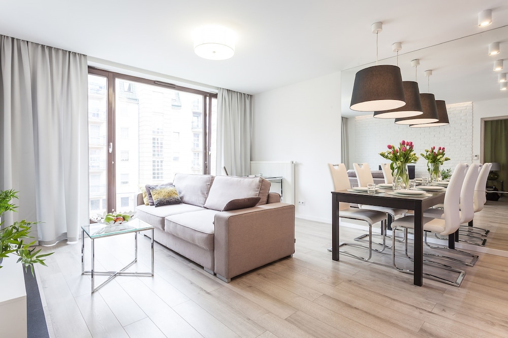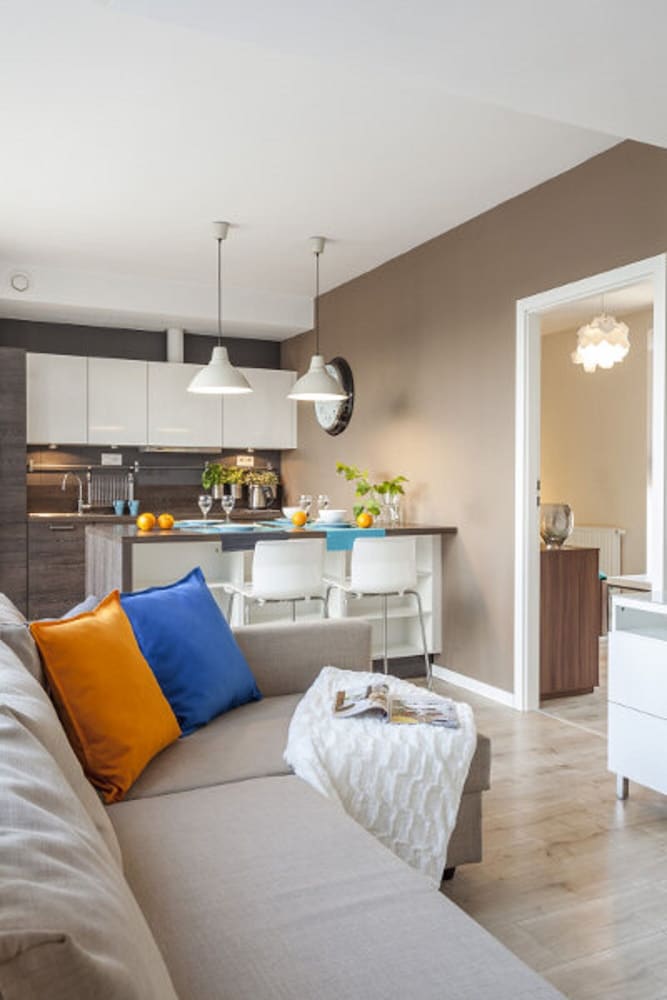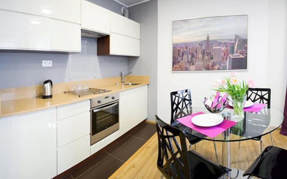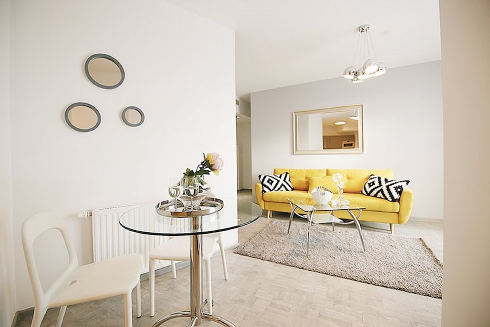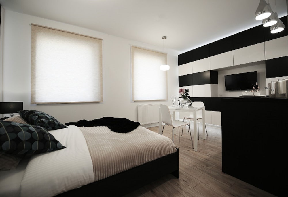 The apartment was spacious, clean and very close to the old town of Wrocław. Just one street away from the main square in the old town. Could walk there. Could have done with better curtains in the bedroom. Very light and not fitting window properly. The sitting room and kitchenette were quite big. The couch bed was leather and a little soft. Overall a good experience.