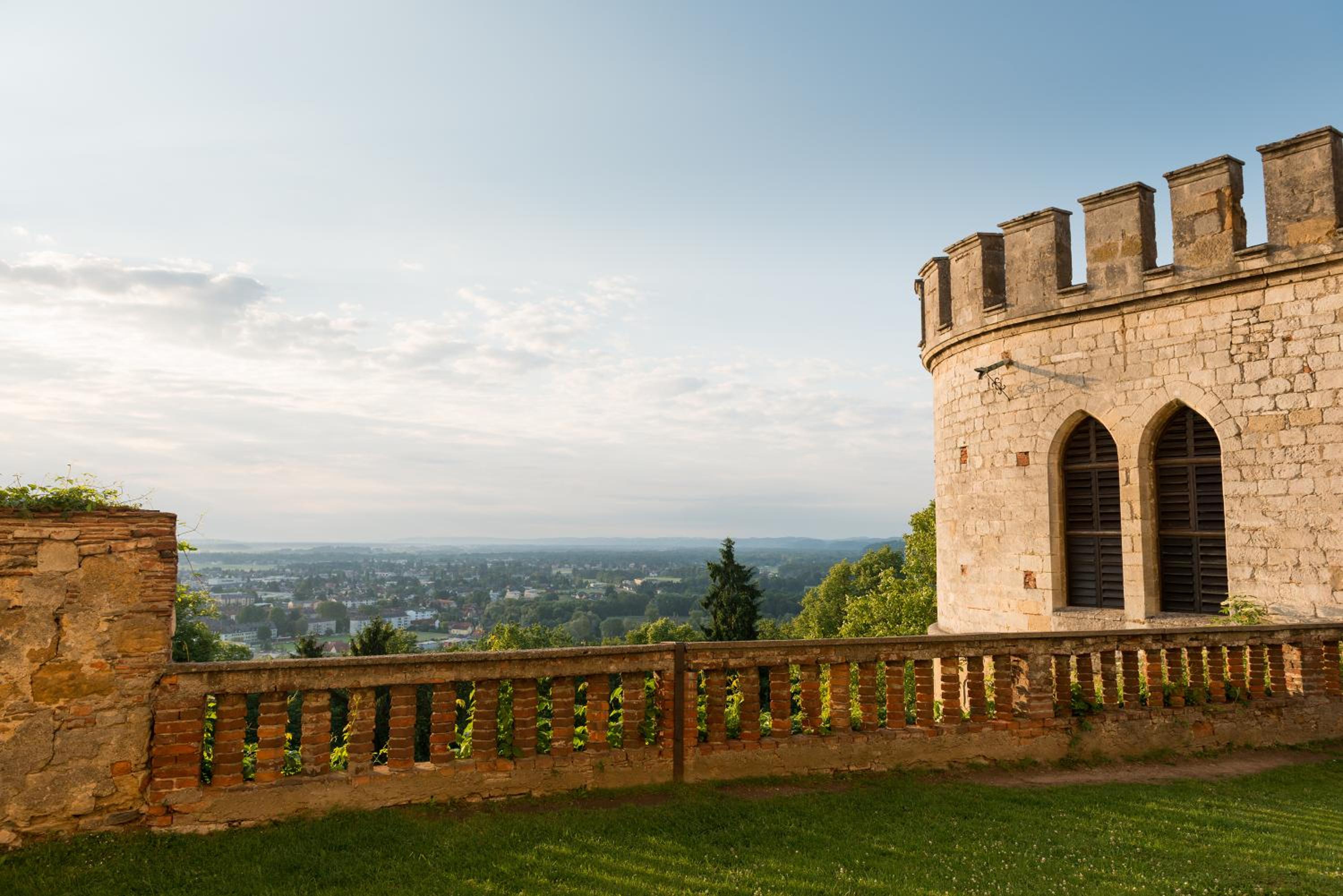 This 12th-century castle in Leibnitz offers a unique stay on a hillside overlooking an expansive 11,000-m² park.