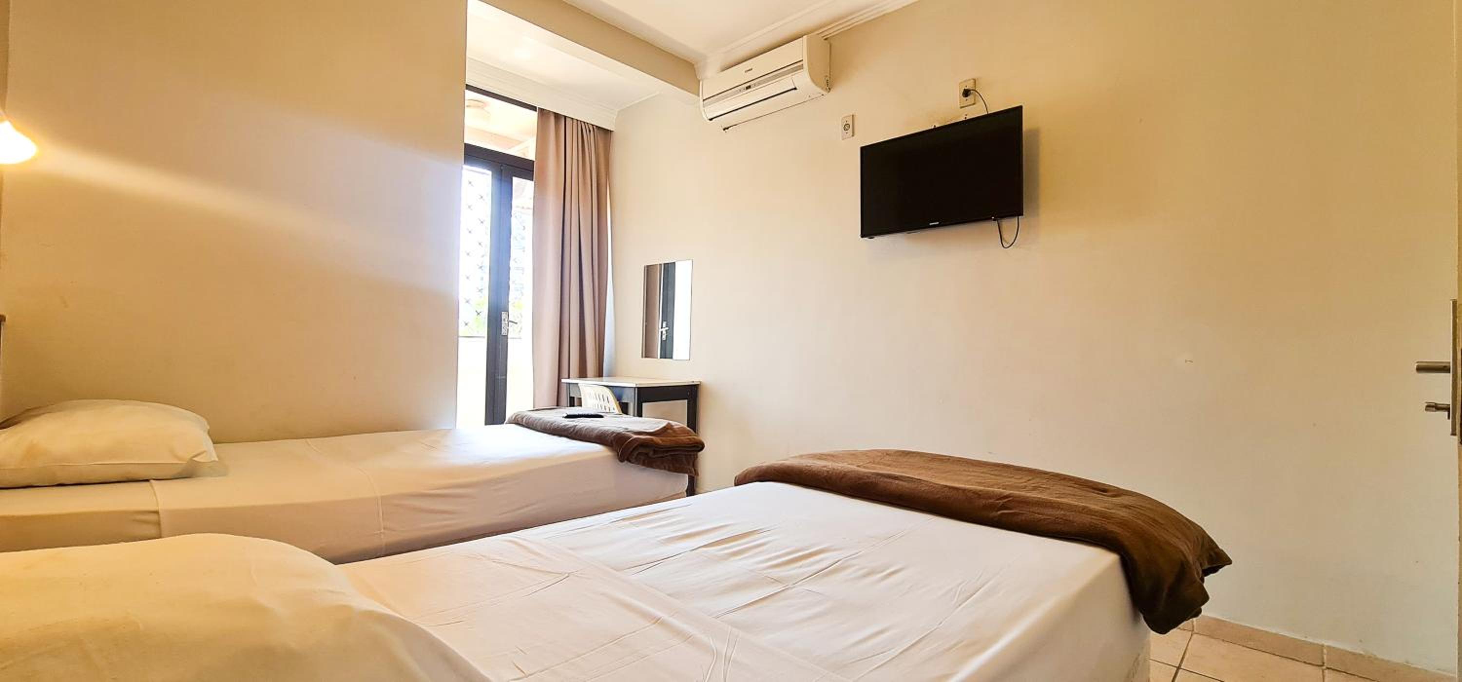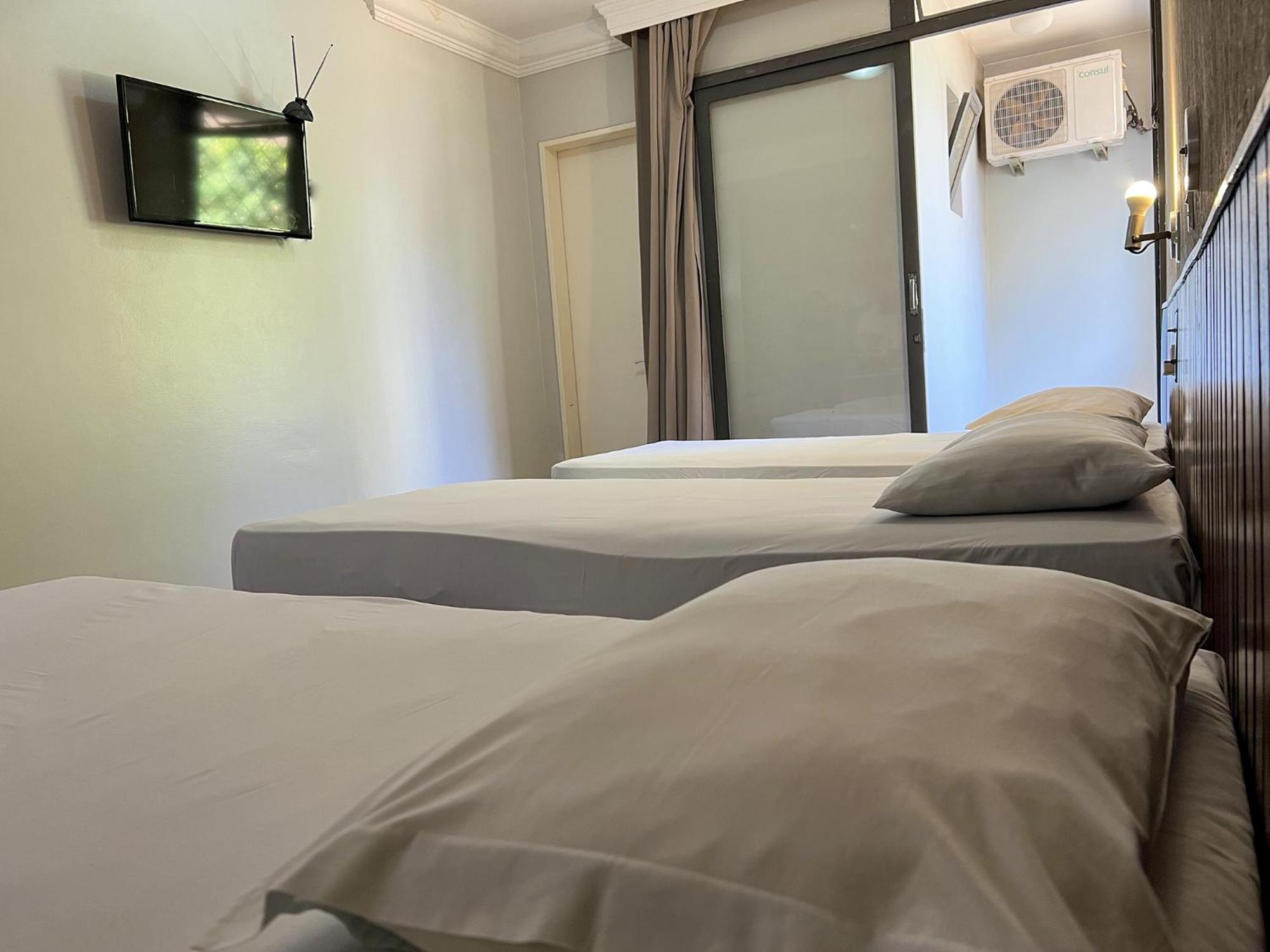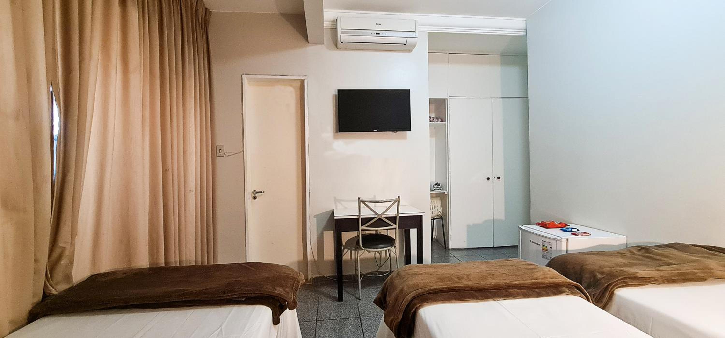 Excelente localização e estrutura adequada! Fiquei instalada no 1º andar e não tive nenhum problema de ruído externo. Funcionários atenciosos e café da manhã bem servido. Ar condicionado e chuveiros em funcionamento.