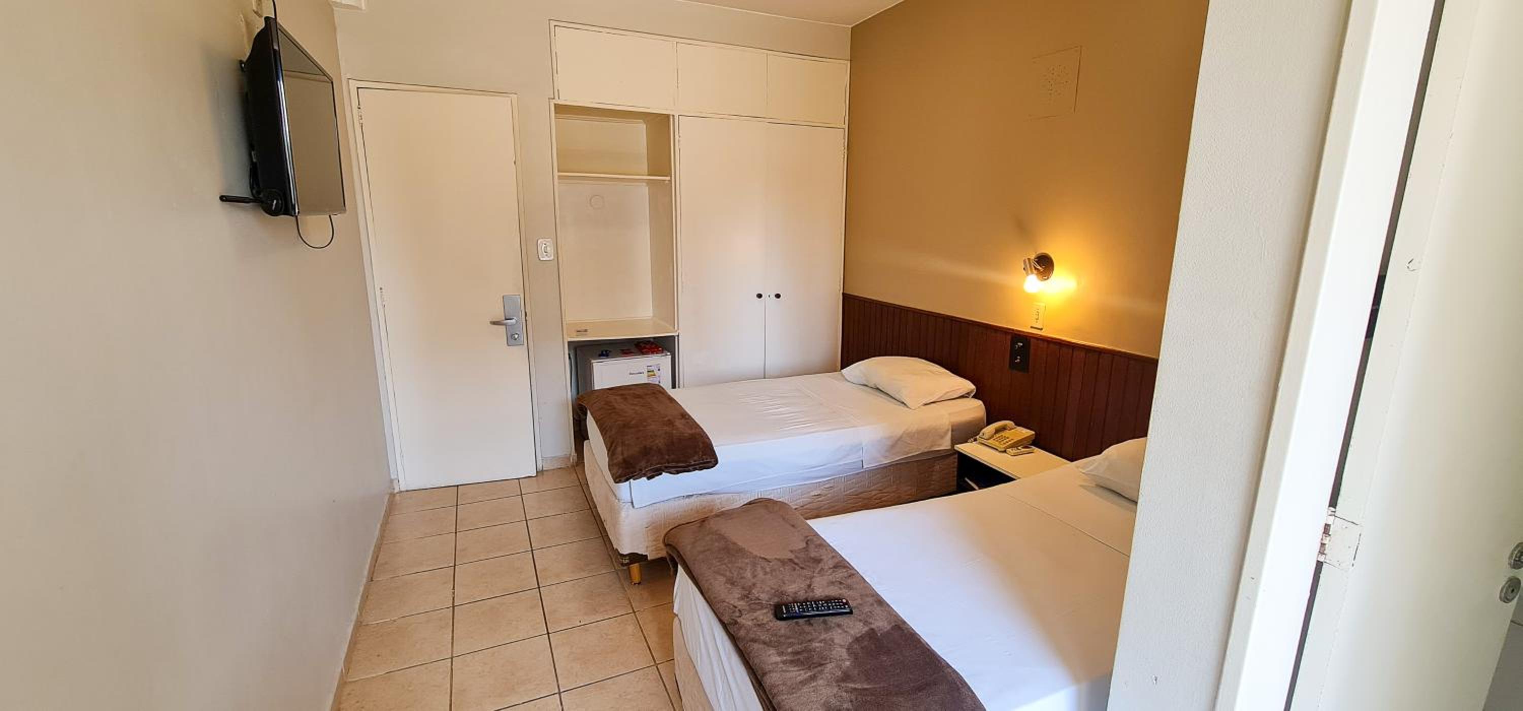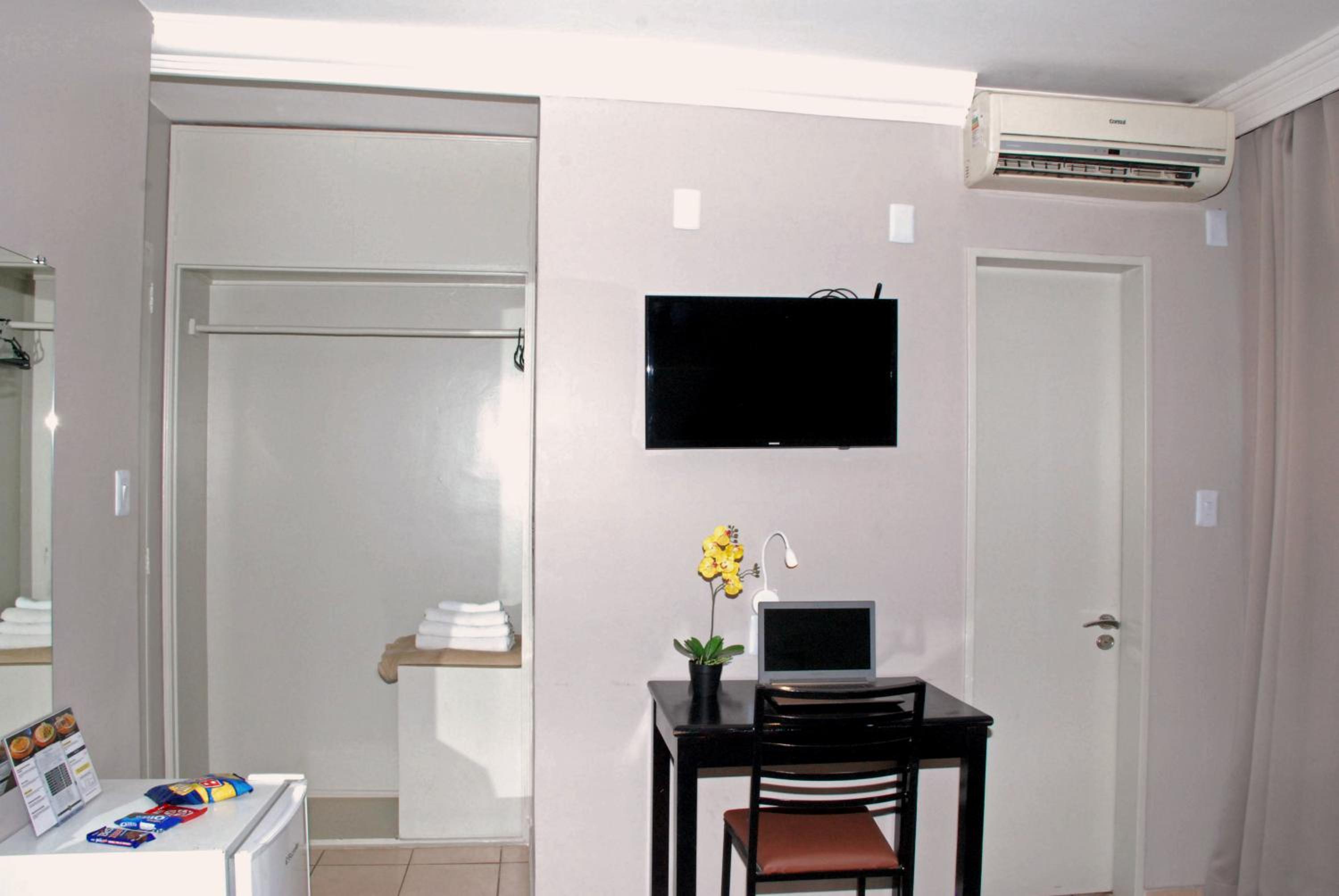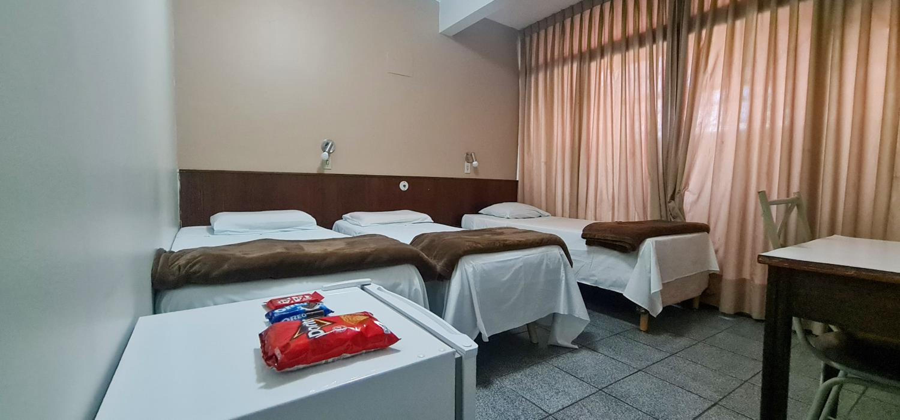 O serviço de quarto, lanche e refeição você tem que atravessar a rua pois é no hotel da frente ou pedir e buscar lá.