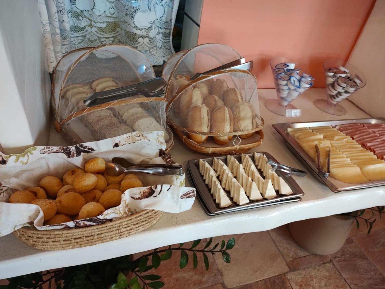 O café da manhã com bastante variedade.