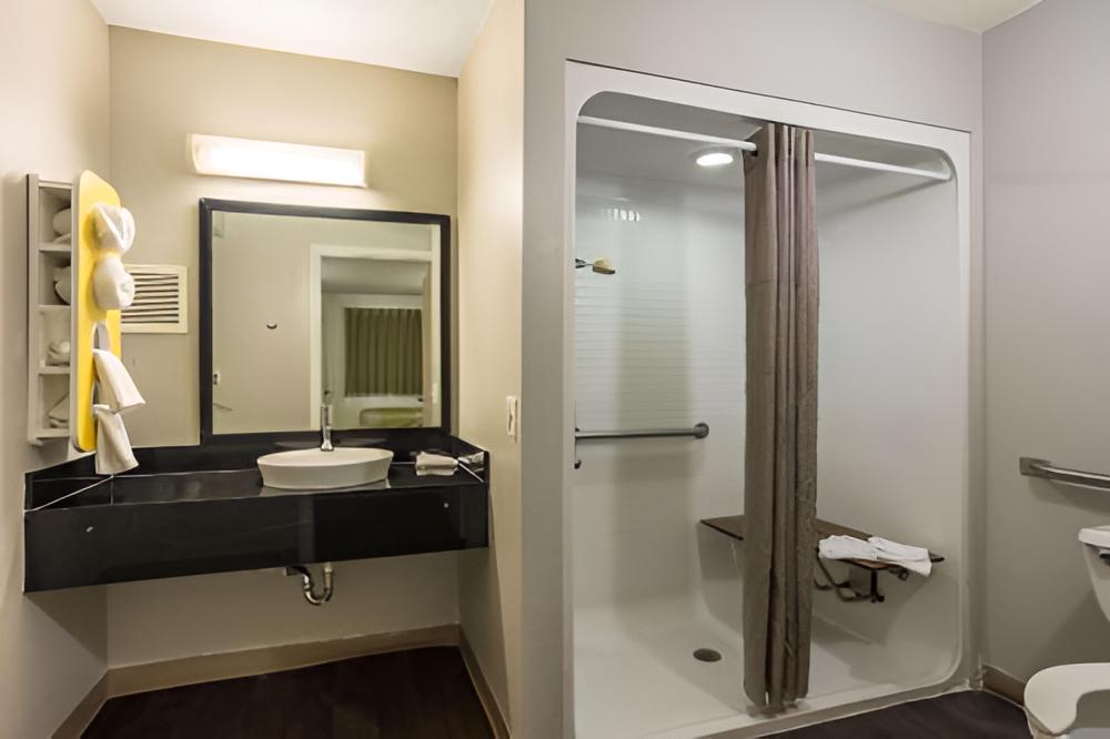 Please note: the front office closes at 8pm every night. Guests with a guaranteed reservation can pick up their room keys at Motel 6 located next door after 8 pm.