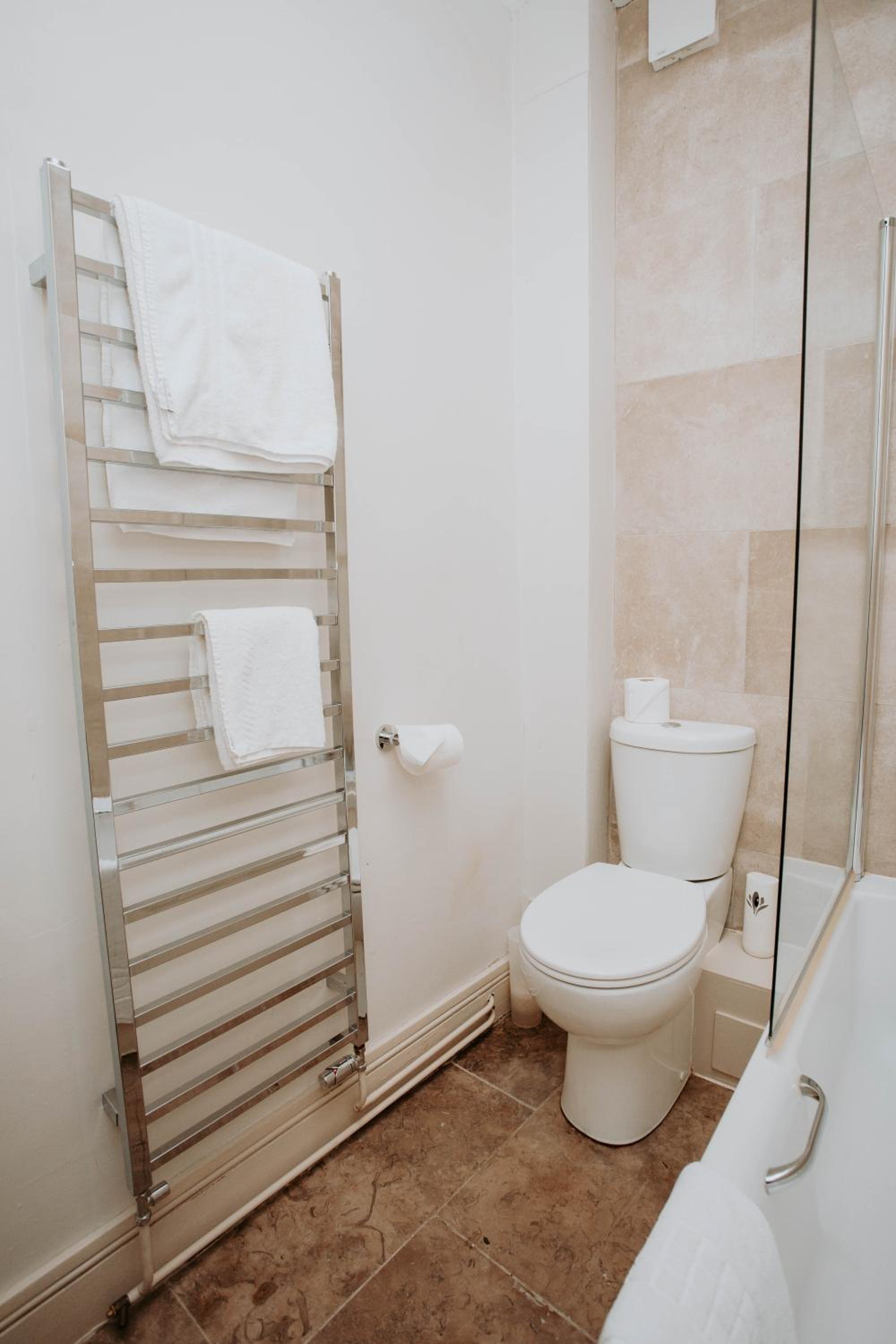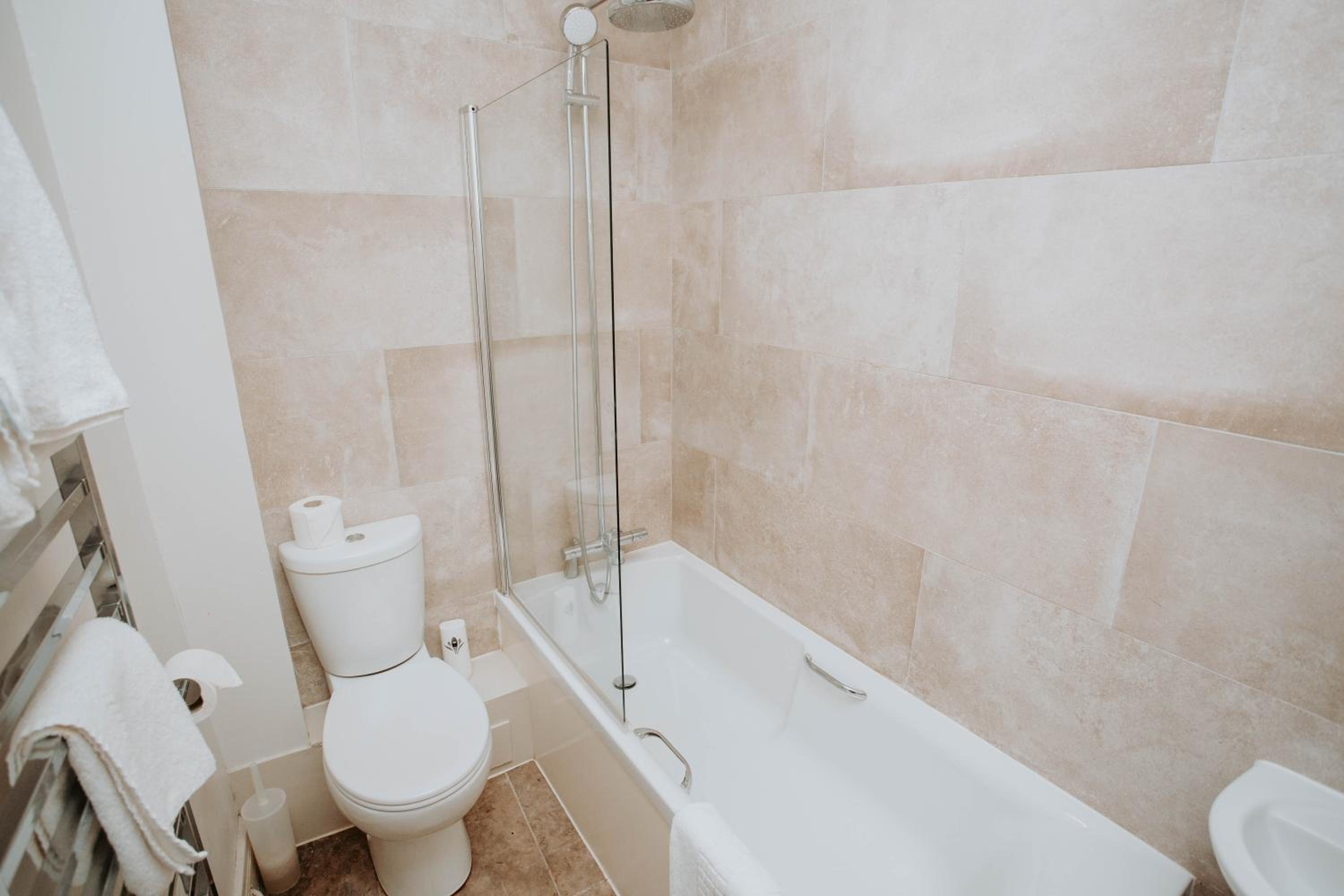 There is no comfy seating to enjoy a drink from the bar. The layout of the bedroom meant one side of the bed was too close to the wall/window for comfort. The bathroom was good but the shower screen on the bath was too short to stop water going onto the floor. The entrance and exit of the parking is narrow.