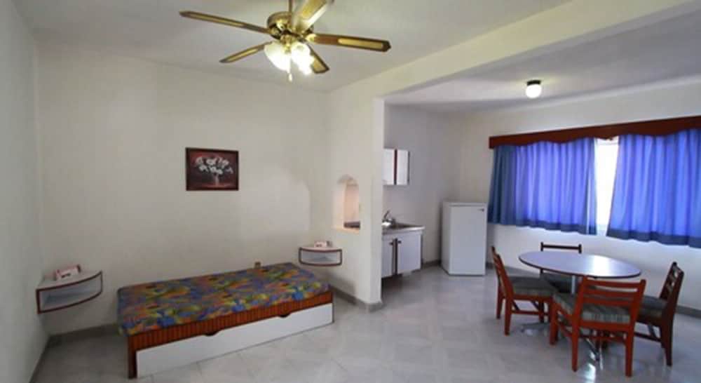 Encontramos arañas y muchas hormiga en la habitación, la instalaciones se ven ya muy viejas en la recamaras, en la zona de jardín y alberca todo bien. El costo de la comida bastante accesible. El personal muy amable
