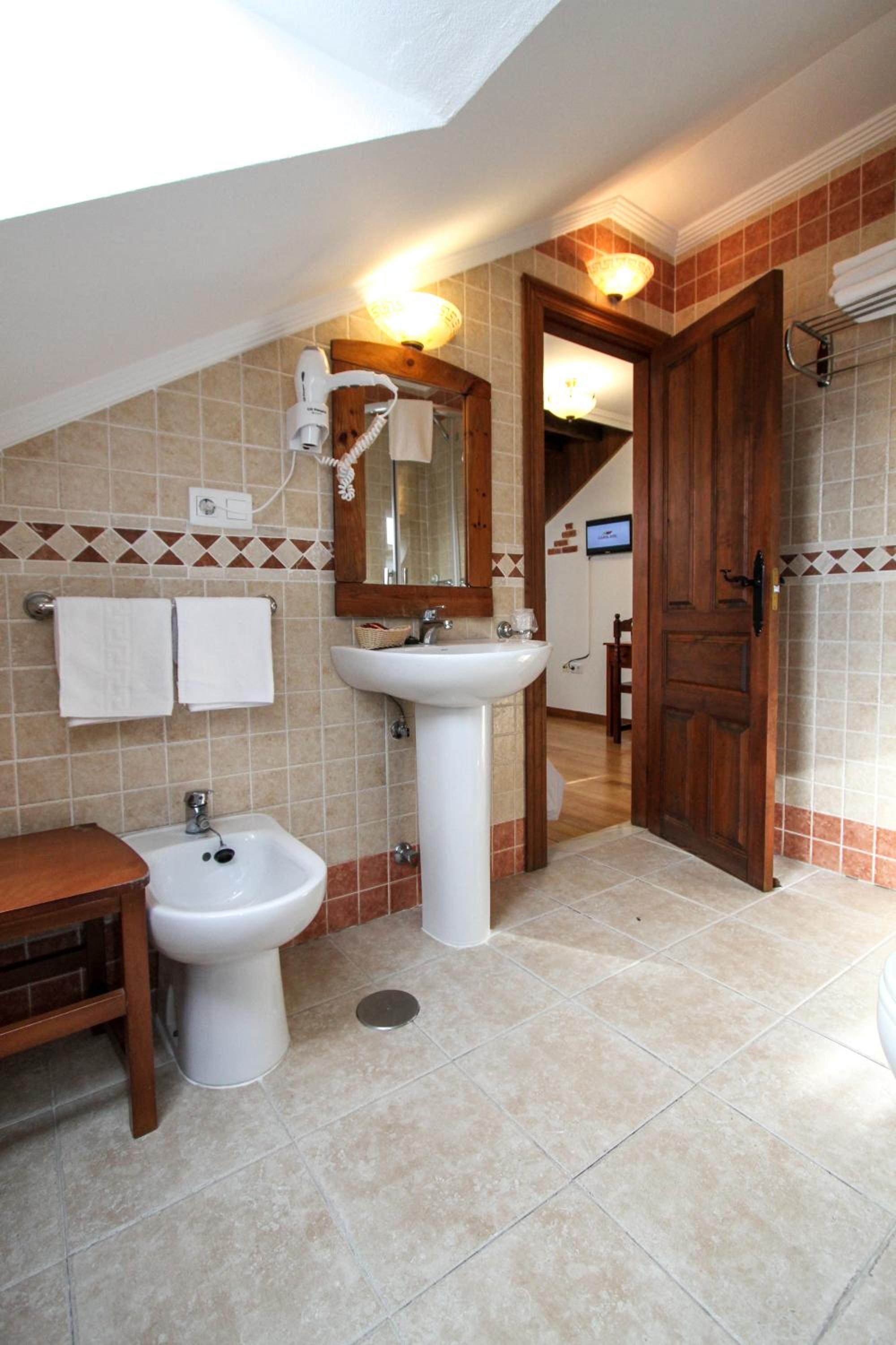 Experience the charm of rural Asturias at Hotel Rural El Espino. The cozy rooms, adorned with vibrant colors, offer modern amenities such as flat-screen TVs and heating, all within a traditional stone and wood building.